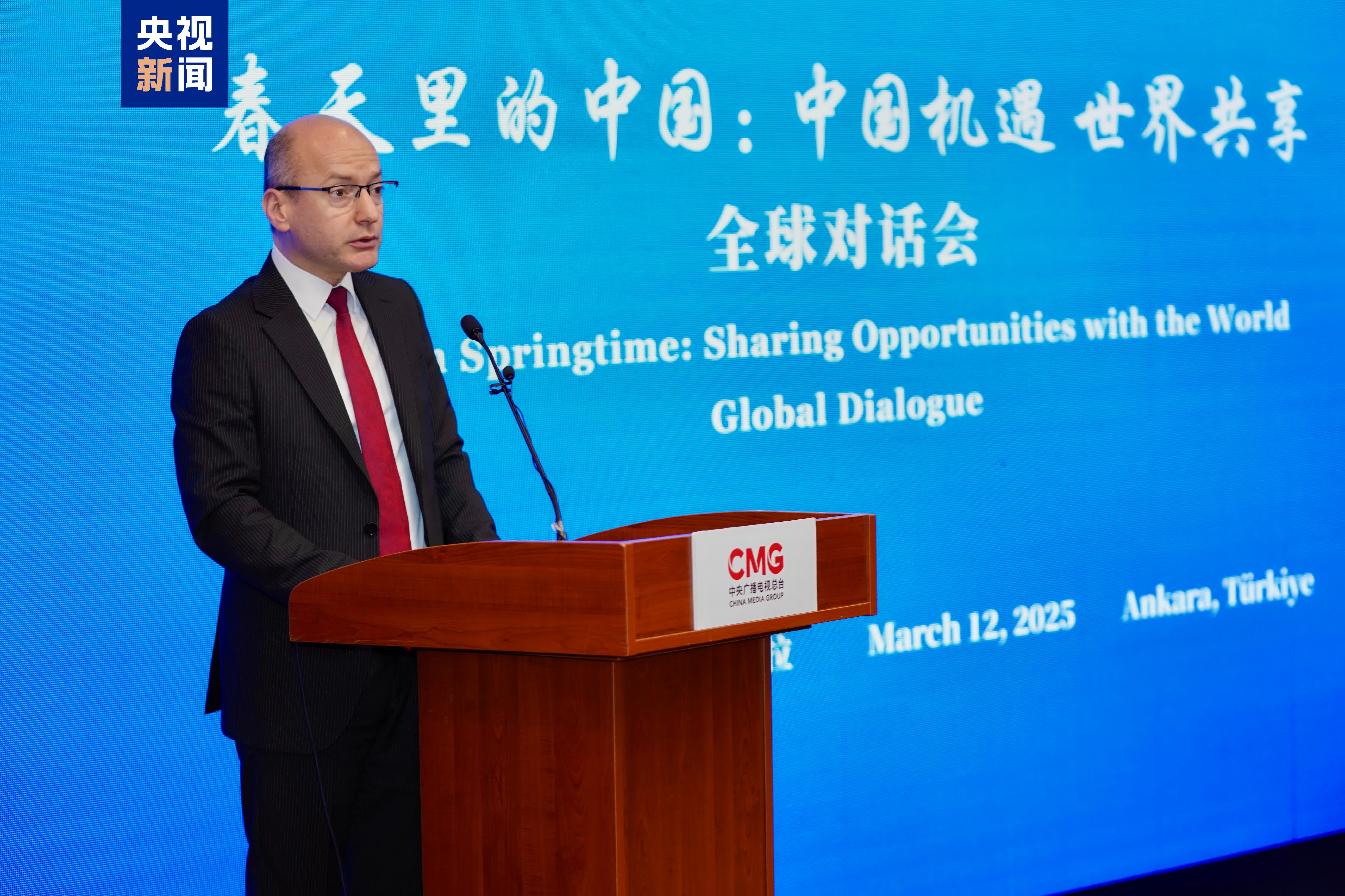 當地時間3月12日,由中國中央廣播電視總台主辦的「春天裏的中國:中國機遇 世界共享」全球對話會土耳其專場在安卡拉舉行。中宣部副部長、中央廣播電視總台台長慎海雄作視頻致辭,中國駐土耳其大使姜學斌、土耳其中東研究中心主席泰米茲出席活動並致辭。土中友好協會主席科馳奧盧、土中商業發展與支持協會主席伊赫桑、土中友好基金會副主席埃爾普爾、土政治經濟社會研究基金會外交政策主任葉希爾塔什等150餘名政商學界嘉賓及媒體代表出席活動,圍繞中國高質量發展給世界帶來的機遇、中土關係發展及雙邊合作等議題展開交流討論。