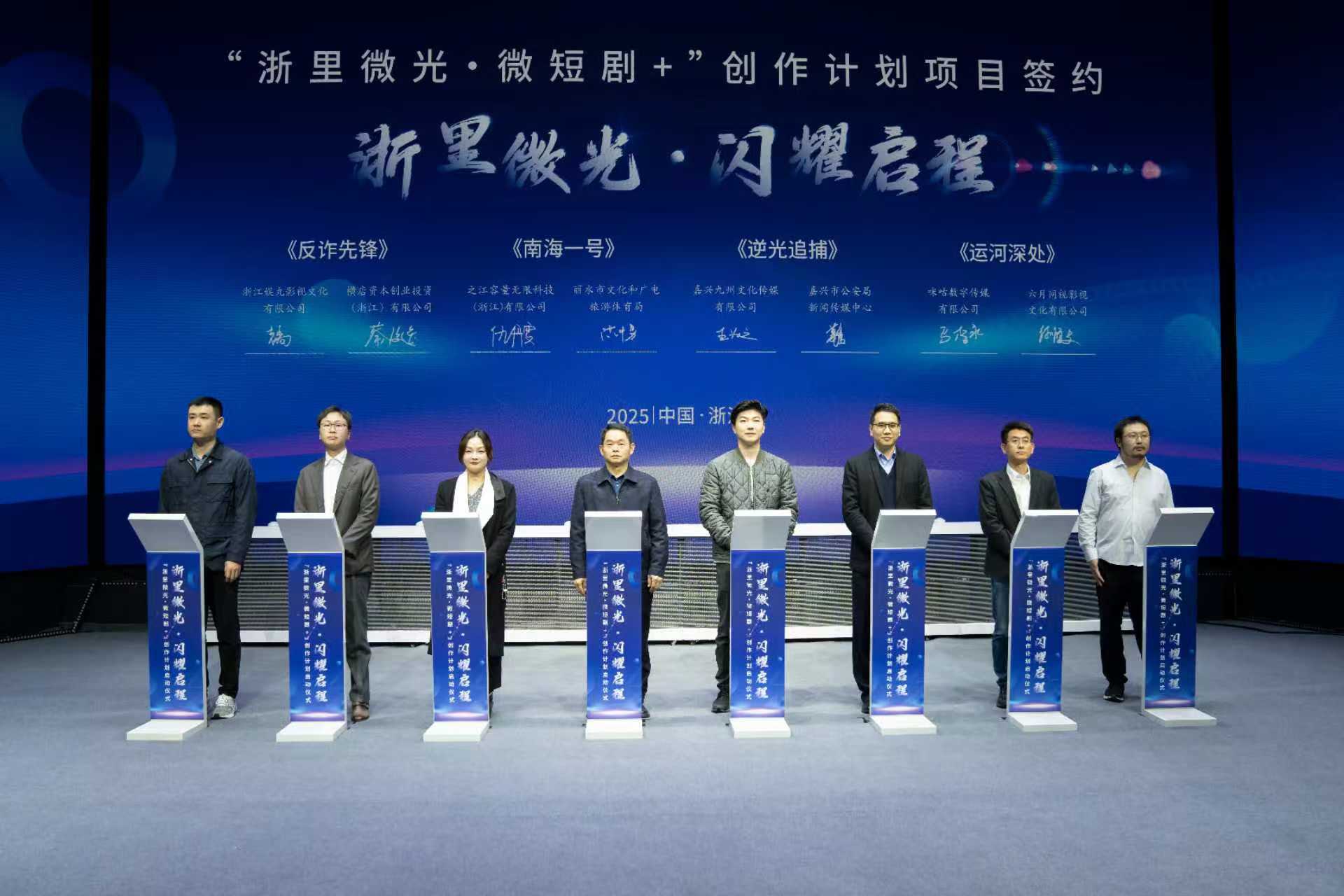啟動儀式現場還舉行「微短劇產學研合作」簽約暨「星瀚生態合作計劃」發布、「浙裏微光·微短劇+」優秀作品展播平台宣推活動。「星瀚生態合作計劃」聚焦導演、編劇、演員人才培養,推動高校與企業在精品創作、微短劇+等領域優勢互補,共建微短劇產業生態。首批簽約作品包括《緝妖傳之臨安秘史》《南海一號》《原罪二之無光角落》等將在咪咕數媒、華數文化、淘寶短劇、容量短劇、九州文化5家微短劇平台上線播出。