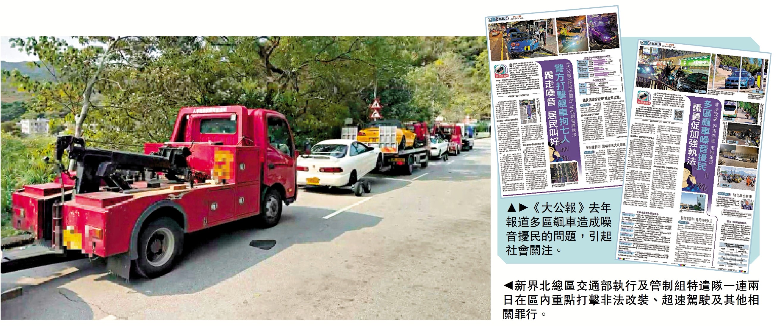 (大公報 記者 盛德文)非法賽車及改車不但違法及隨時害人害己,飆車發出的高強度噪音更令居民飽受困擾。警方打擊飆車及改車一直不遺餘力,惟情況屢禁不止。《大公報》去年3、4月刊出「多區飆車噪音擾民」的專題報道,探討善用科技執法。