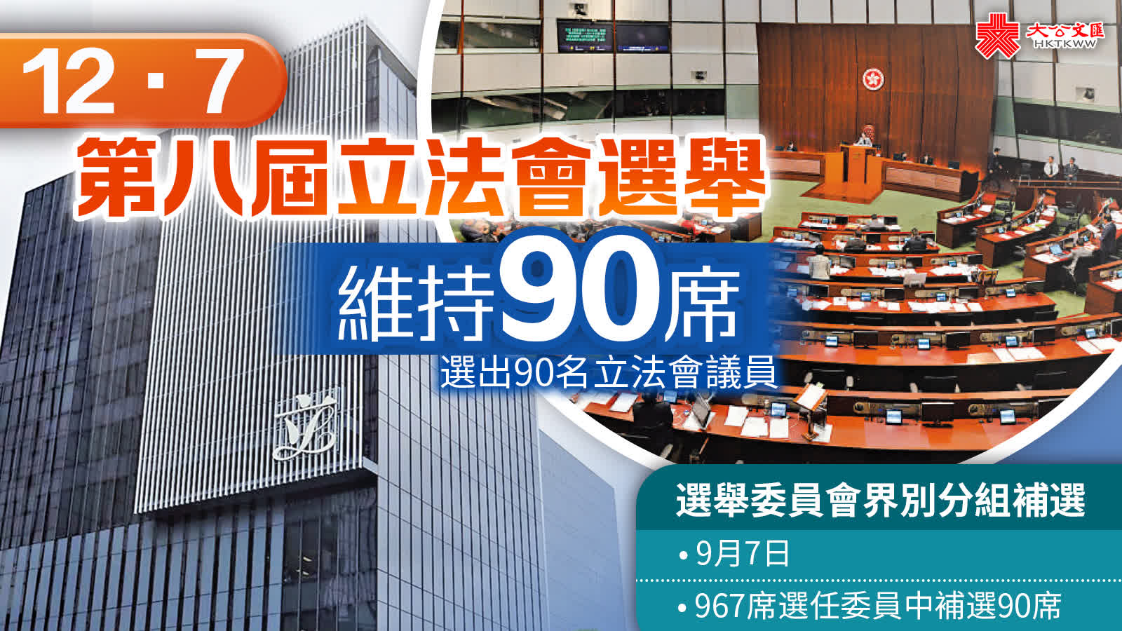 (大公報記者 義昊)換屆選舉/行政長官李家超18日出席行政會議前會見媒體時宣布,第八屆立法會選舉投票定於12月7日舉行,選出90名立法會議員。立法會換屆選舉前須舉行選舉委員會界別分組補選,日期為9月7日。特區政府會確保選舉在公平、公正、誠實及安全有序下順利進行。