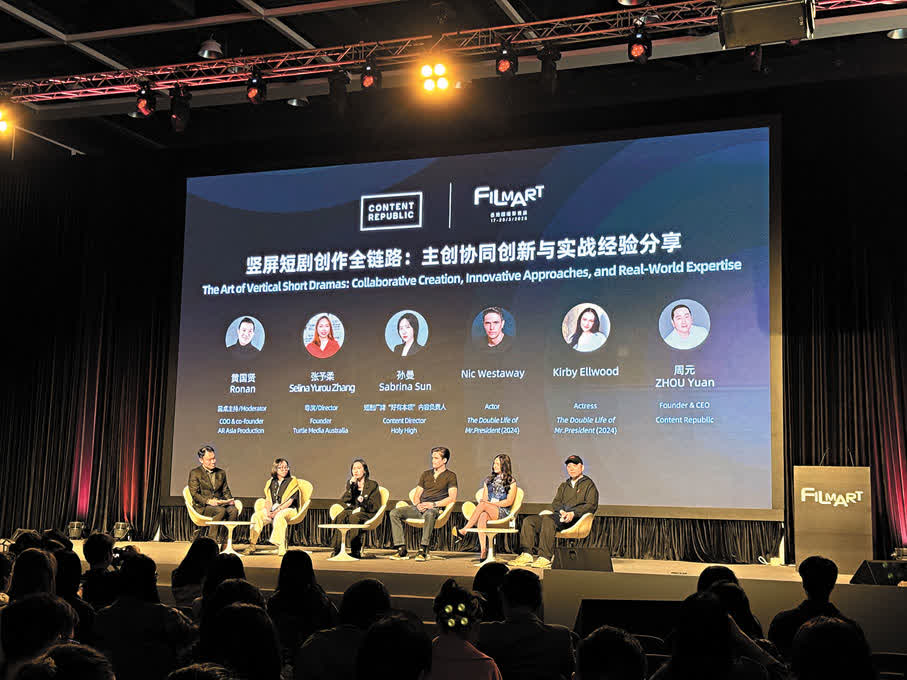 (香港文匯報 記者 張岳悅、陳藝)短視頻時代,「爆款內容」成為觀眾注意力的匯聚地,微短劇也成為了影視行業重要的增長引擎。第29屆香港國際影視展(FILMART)舉辦期間,「微短劇」亦成為熱門關鍵詞,在「共創共享·融通視界」國際傳播論壇中,主管部門代表、各界行業先鋒及專家學者就「新興業態:聚焦微短劇發展與趨勢」等議題各抒己見,亦有業界代表在「解鎖新機遇:共創全球豎屏短劇未來」主題討論中共探微短劇行業的未來發展趨勢,以及微短劇出海的機遇和挑戰。