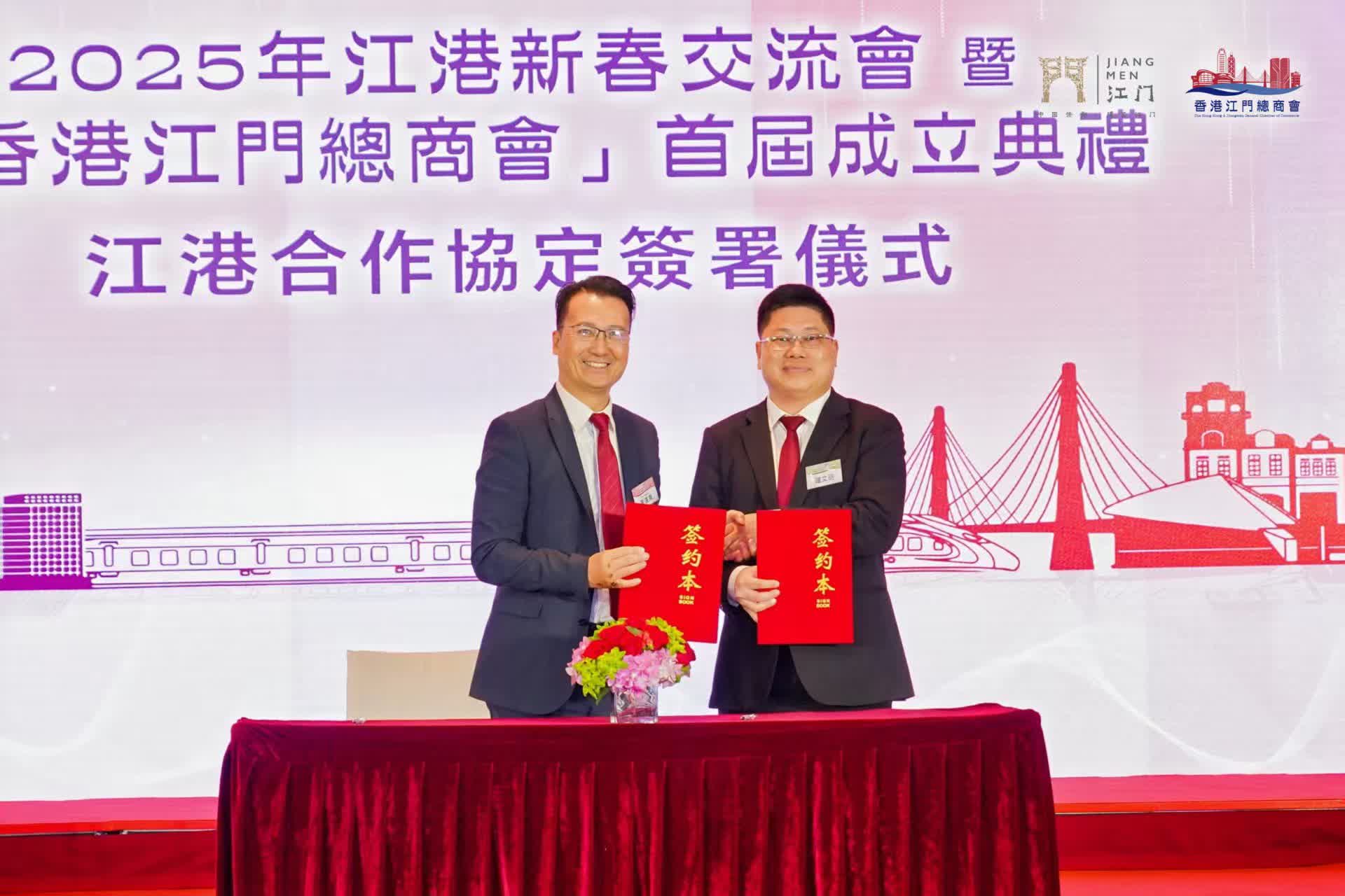 18日下午,2025年江港新春交流會暨香港江門總商會首屆成立典禮在香港舉行。江門市委書記、市人大常委會黨組書記、主任陳岸明,香港特區政府律政司副司長張國鈞,香港特區政府審計署署長林智遠,中央政府駐香港聯絡辦社團聯絡部部長蘇玉軍,香港再出發大聯盟秘書長譚耀宗,江門市政協黨組書記、主席張磊,江門市委副書記鄭澤暉,江門市人大常委會黨組副書記、副主任凌傳茂等出席活動。