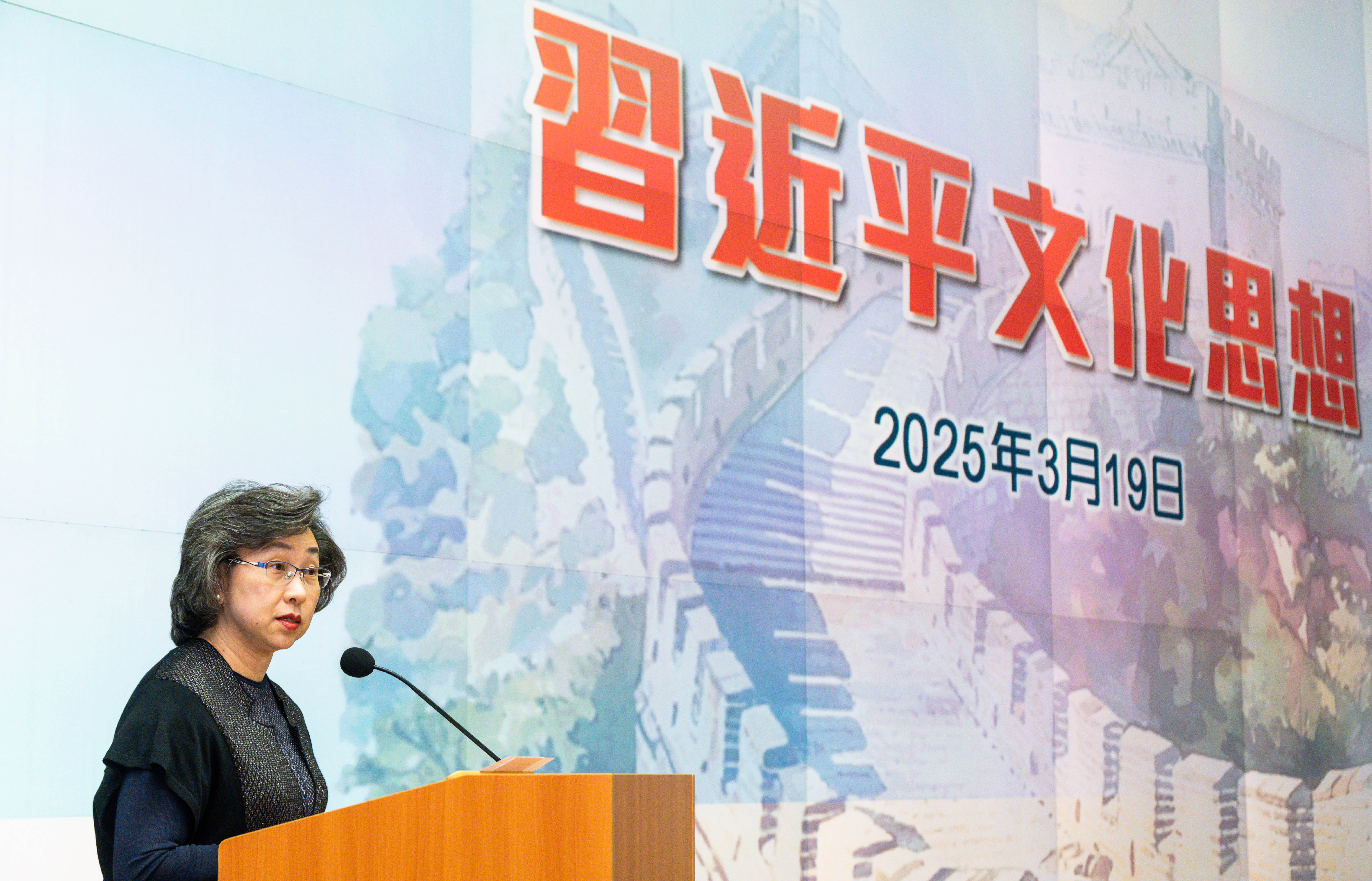 公務員事務局局長楊何蓓茵在講座致辭時表示,習近平文化思想是新時代中國特色社會主義文化發展的理論指引,強調堅定文化自信、秉持開放包容、堅定守正創新。習近平文化思想的重要性,不僅是對中華傳統文化的傳承與發展,還是通過推進文化強國建設,為實現中華民族偉大復興的目標提供精神力量。