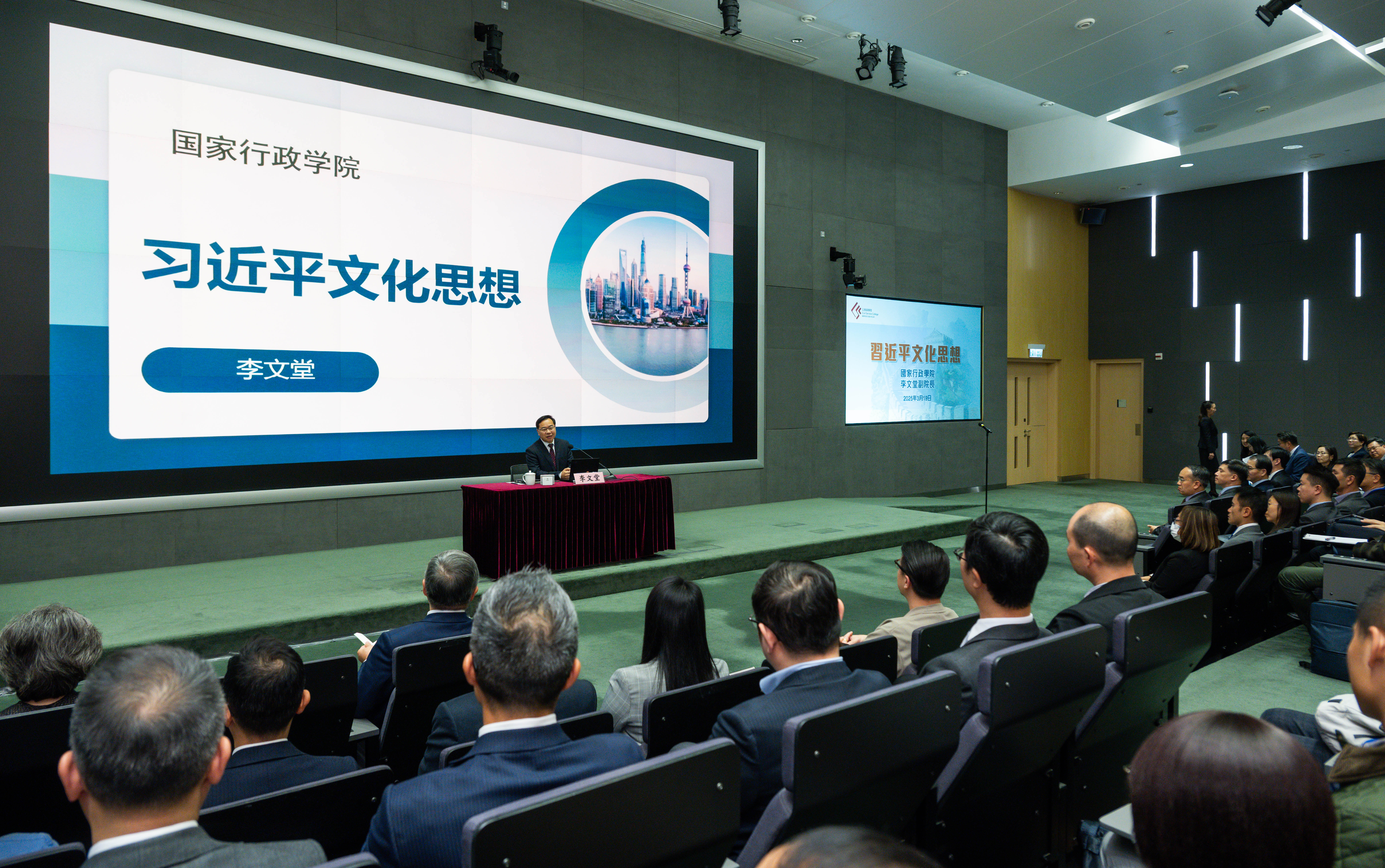 大公文匯全媒體報道,公務員學院今日(19日)在政府總部舉辦「習近平文化思想」講座,由國家行政學院副院長李文堂主講。約160名政治委任官員、首長級和中高級公務員參與講座。