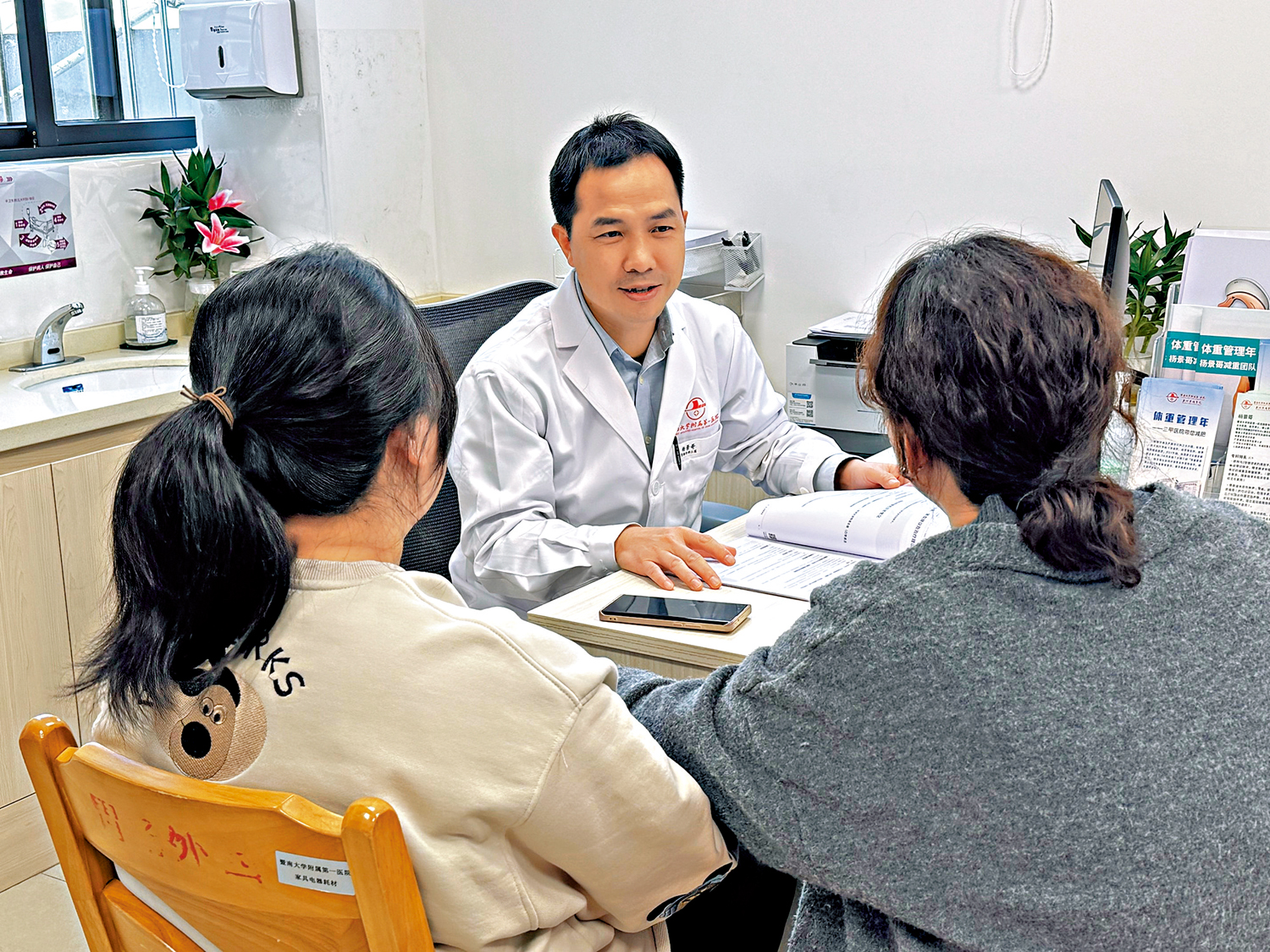 在候診區,記者聽到一名來覆診的女生興奮地表示「自己一周就瘦了四斤!」更有減肥成功的患者專程回來道謝。記者在原定採訪時間等了50分鐘才採訪到暨大附一院副院長楊景哥醫生,他同時是該院肥胖代謝病綜合診療中心的負責人。「來就診的人實在太多了,也有不少是臨時加號的老患者。」楊景哥告訴記者,減重中心開設3個月來接診量已超過1000人。「尤其全國兩會之後,『體重管理年』的觀念更深入人心,我們的門診量大幅增加,經常要額外加號。」