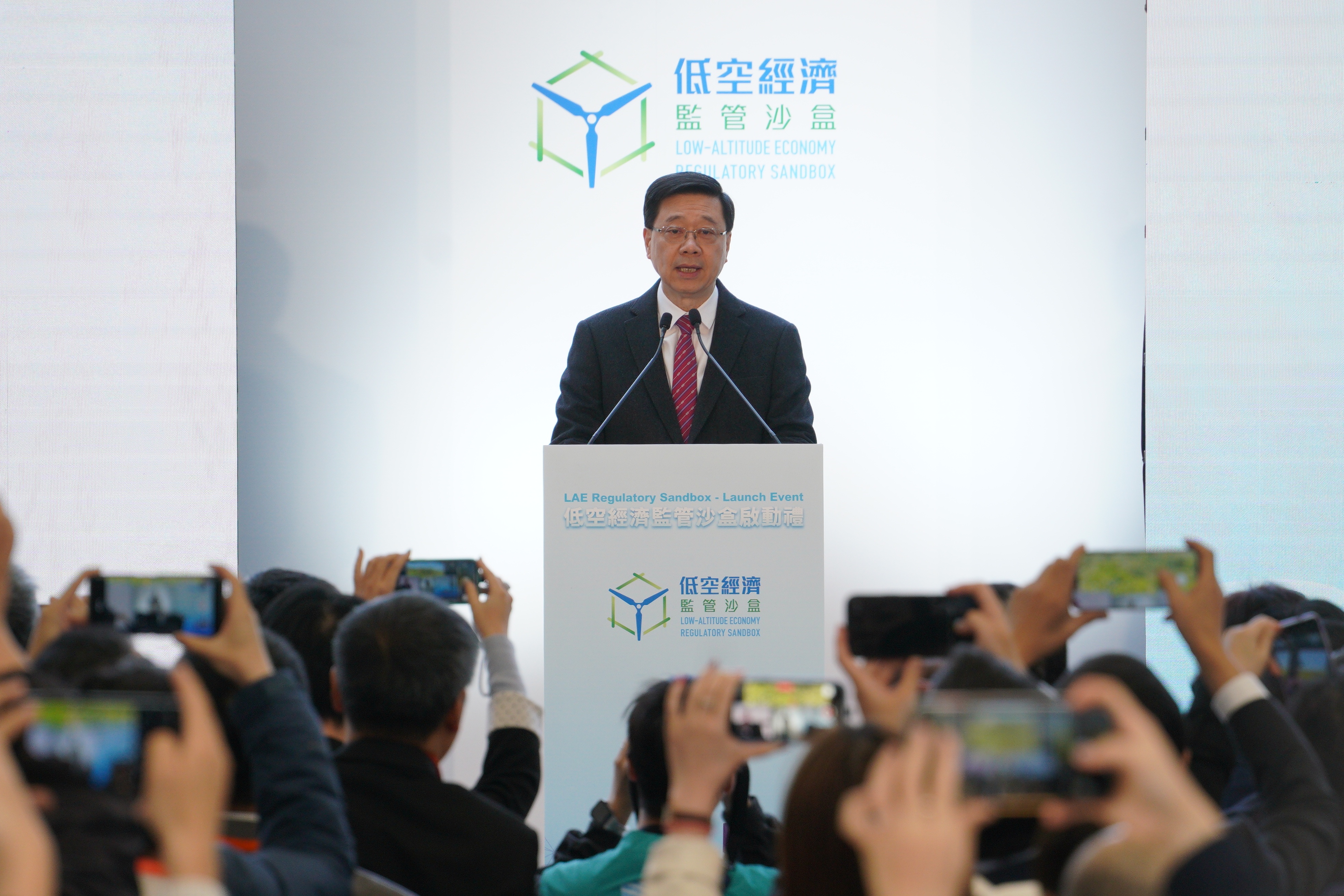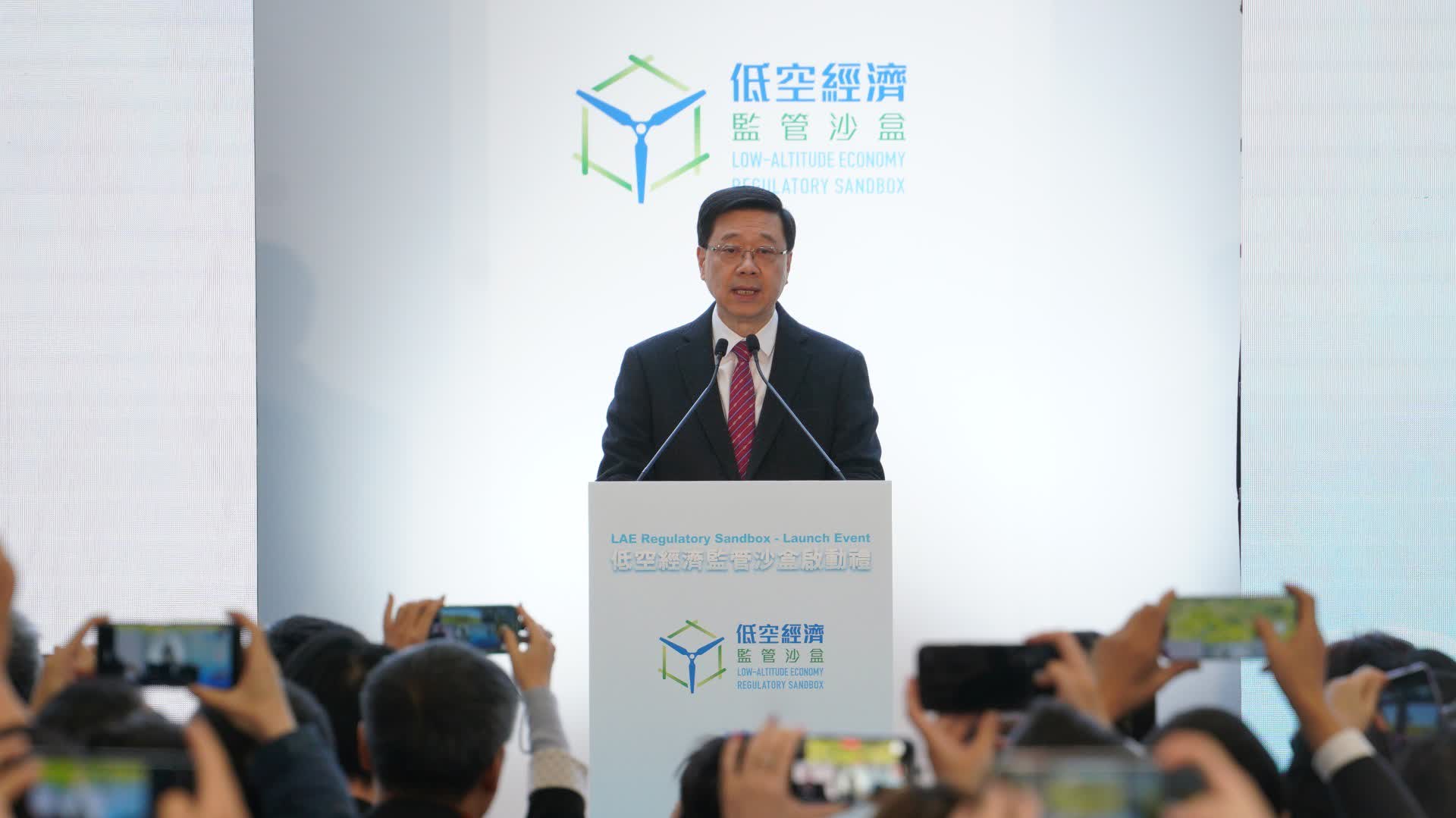 李家超稱,低空經濟發展涉及大量科技及創新元素,在這方面香港擁有優勢,香港正發展成為國際創科中心及國際高端人才集聚高地,也是全亞洲唯一擁有5所世界排名百強大學的城市。今日「監管沙盒」啟動禮的目的,是要讓低空經濟飛得穩、飛得遠,透過「監管沙盒」讓企業、學術界、政府部門等以先行先試的方式為低空經濟構建示範項目,為創新科技提供安全的試驗田及孵化器,為他們制定適合香港的低空經濟生態環境。