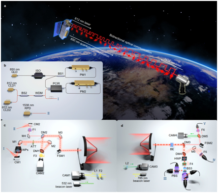 在本研究工作中,量子微納衛星與濟南、合肥、南山、武漢、北京、上海、南非斯坦陵布殊等地面光學站建立光鏈路,實現實時星地量子密鑰分發實驗。以衛星作為可信中繼,研究團隊進一步實現了地面相距12900多公里北京站和南非斯坦陵布殊站之間的密鑰共享和數據中繼。