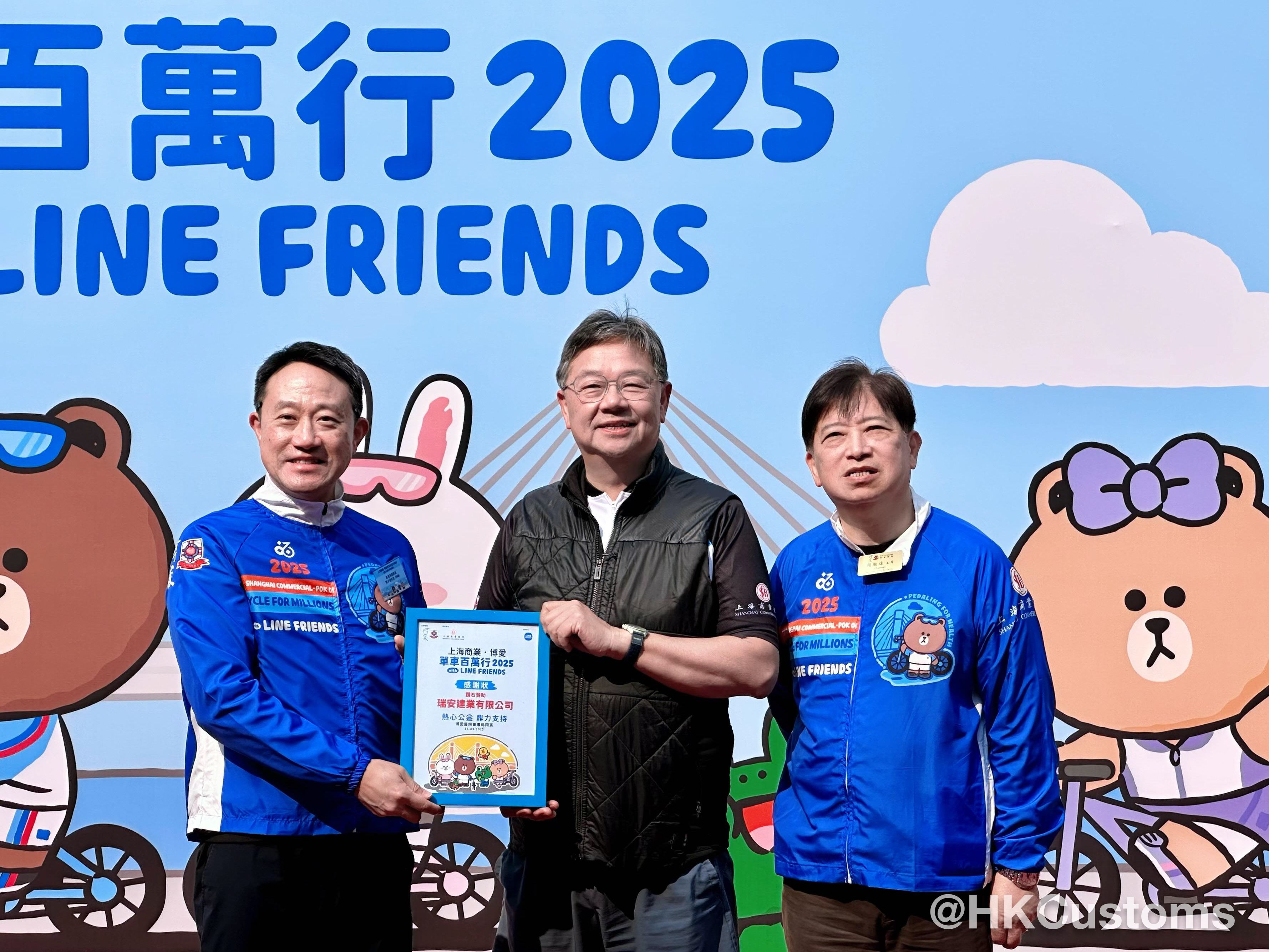 香港海關關長陳子達於三月十六日出席支持單車百萬行活動,並擔任頒獎嘉賓為大會頒發感謝狀,感謝得獎單位熱心公益及對慈善工作的大力支持。活動善款將用於博愛服務,包括長者護理及護養。
