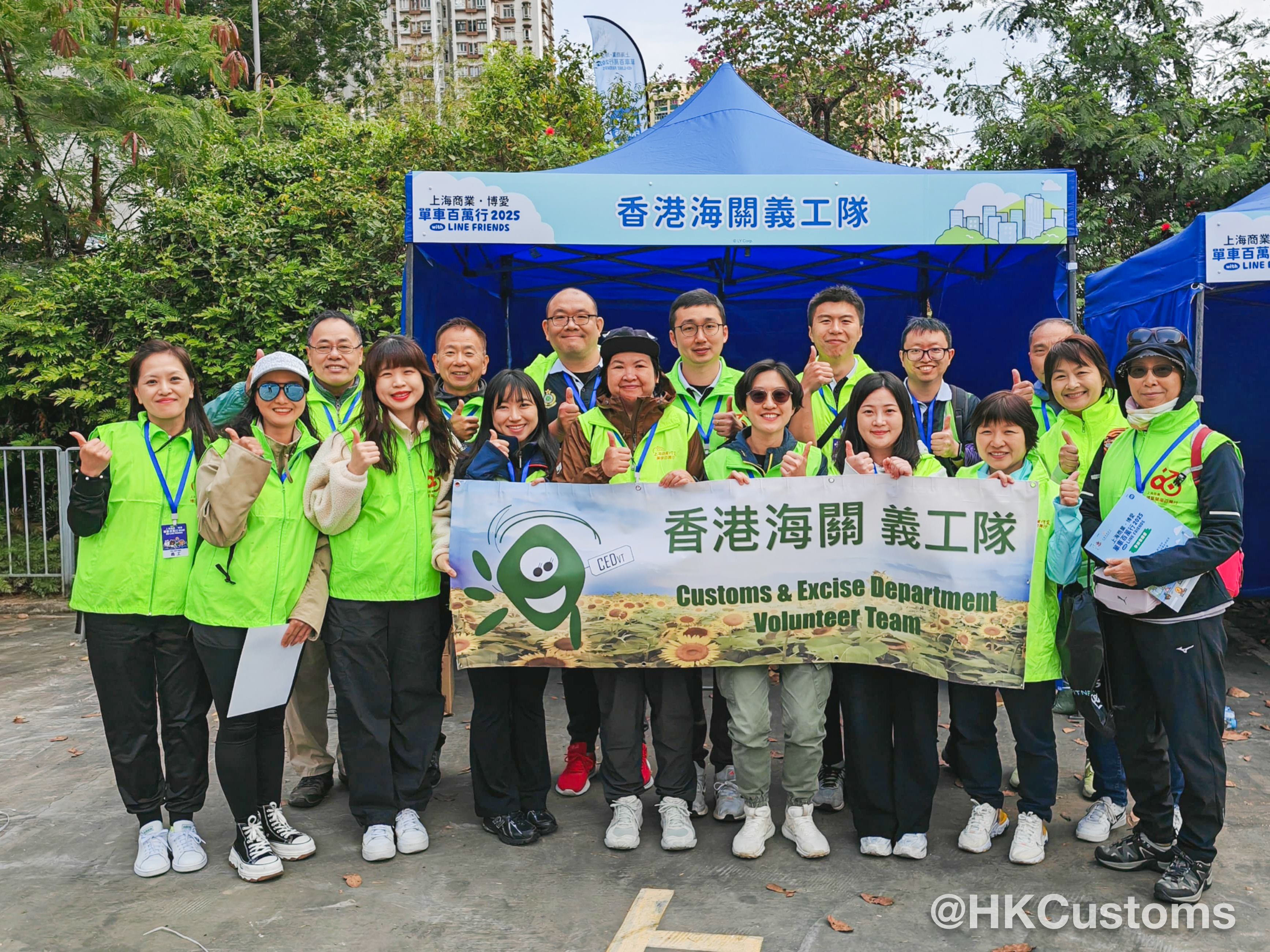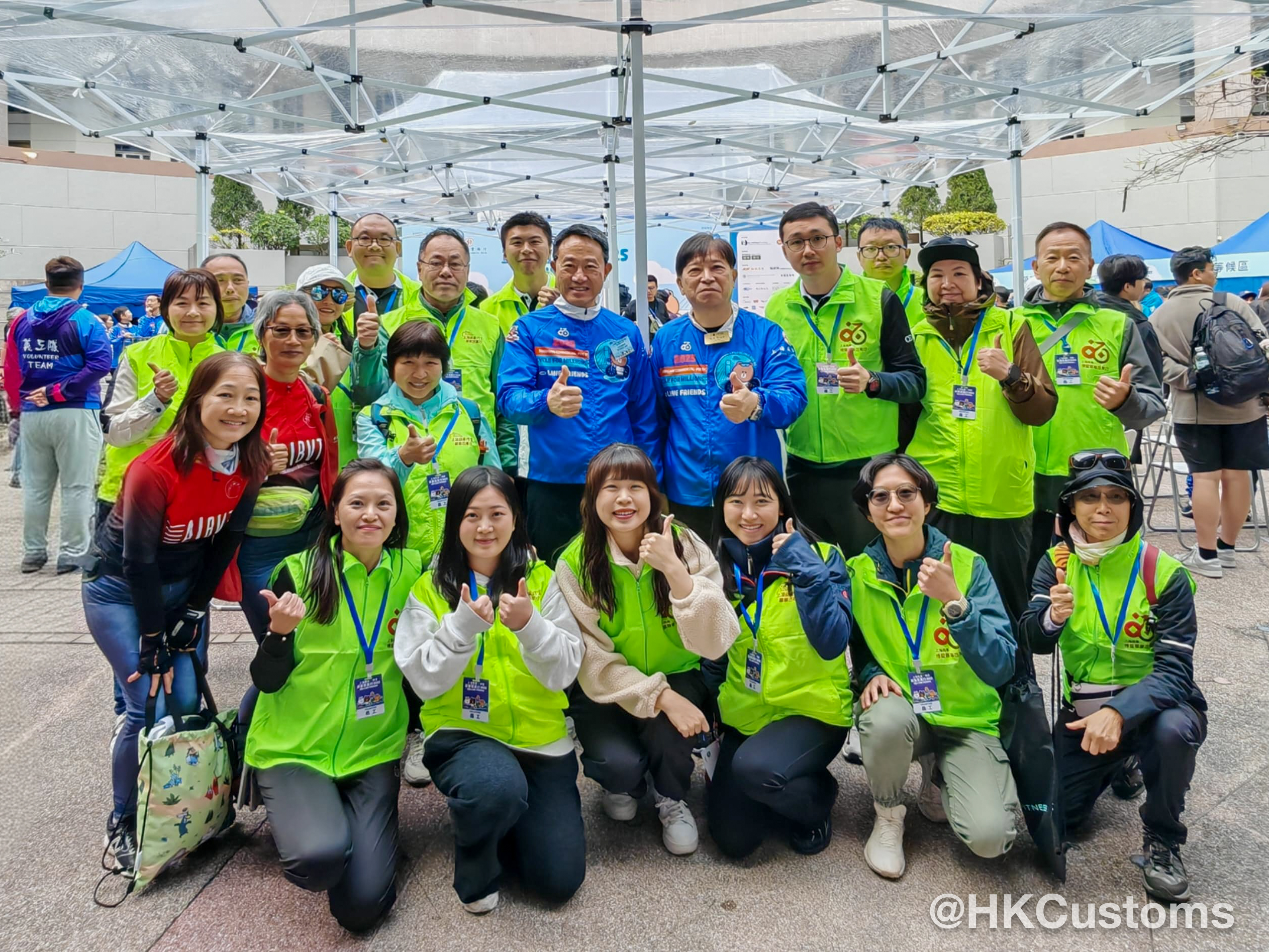 香港海關義工隊全力支持此次活動,還沒天亮就抵達青衣會場準備,並在活動期間負責人群管理,齊心協助主辦單位順利進行活動。