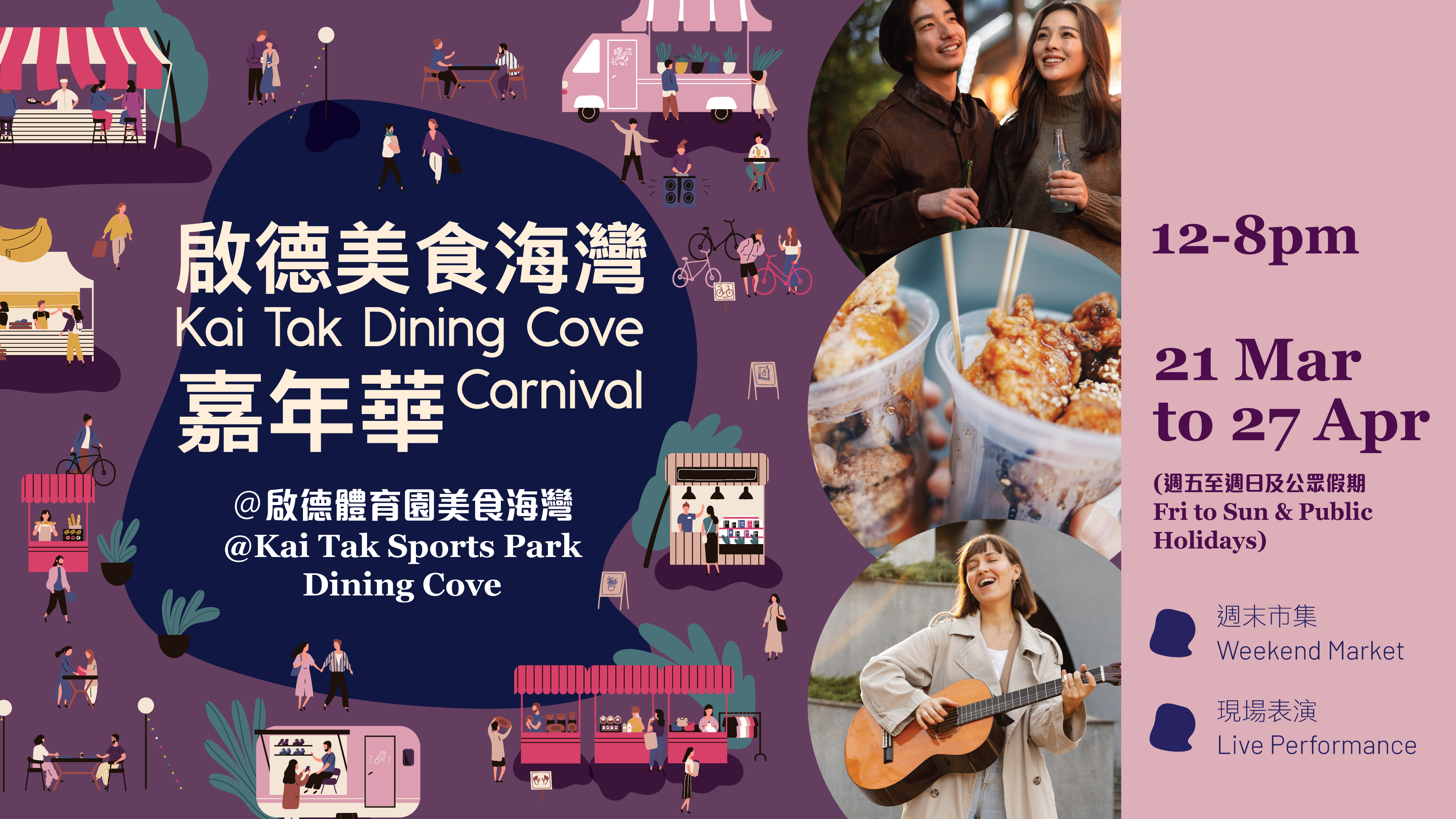 嘉年華匯聚近30個人氣美食攤位,包括意式雪糕、多款手工啤、港式小食碗仔翅、糯米糍等等。每個周末更有新品牌輪流亮相,加上音樂文化表演,讓本地市民、盛事活動觀眾及旅客無論日與夜,都能沉浸在充滿活力與美食的氛圍中,締造難忘的周末!