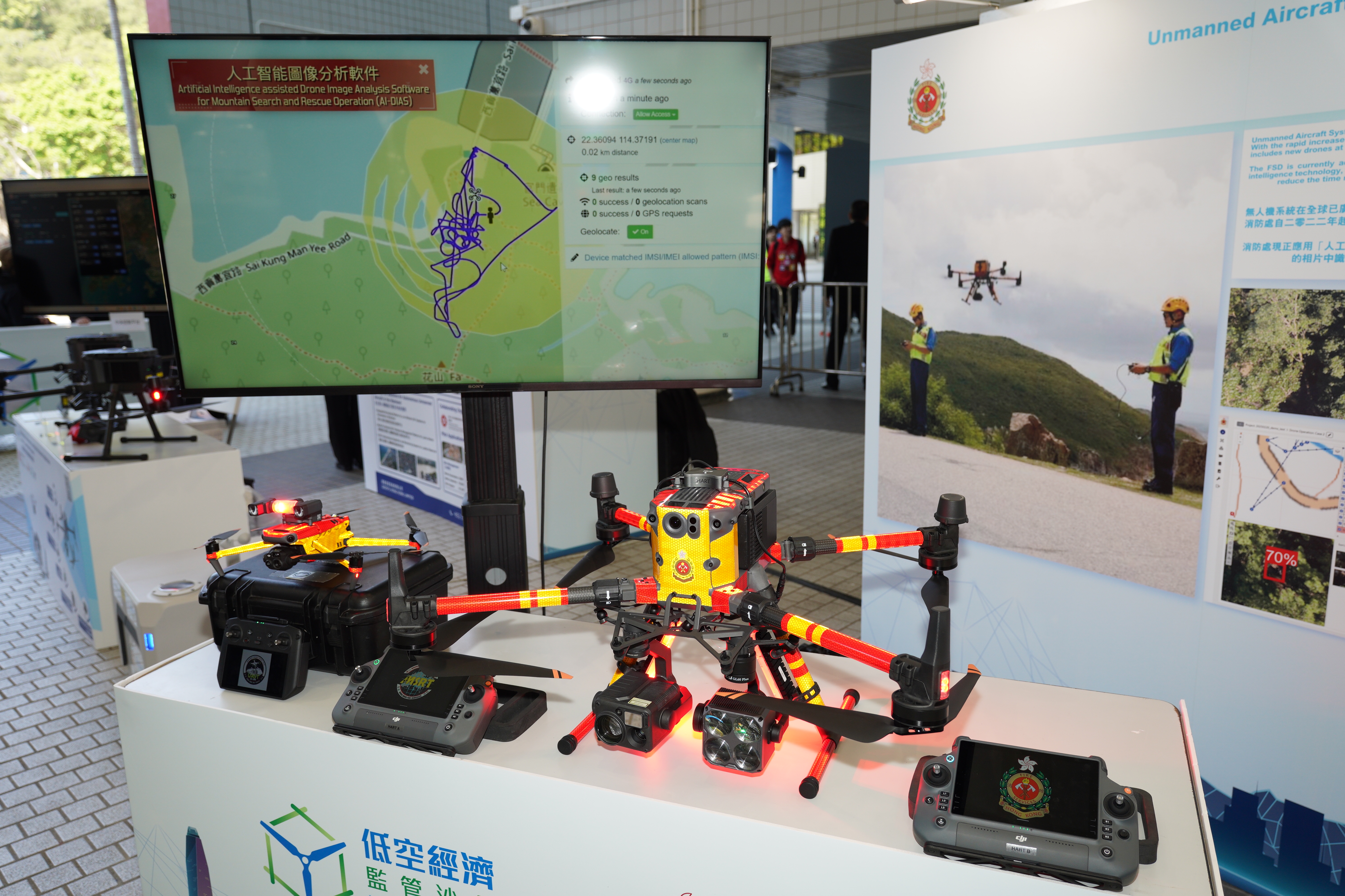 消防處推出的救援無人機也成為一大亮點,自重僅2公斤的無人機可快速尋找並準確偵測事故現場,利用AI尋找失蹤人士。有的無人機可攜帶30公斤重的救援及手術工具,相比於傳統的人力攜帶搬運,科技減輕了救援負擔,也提升了救援效率。