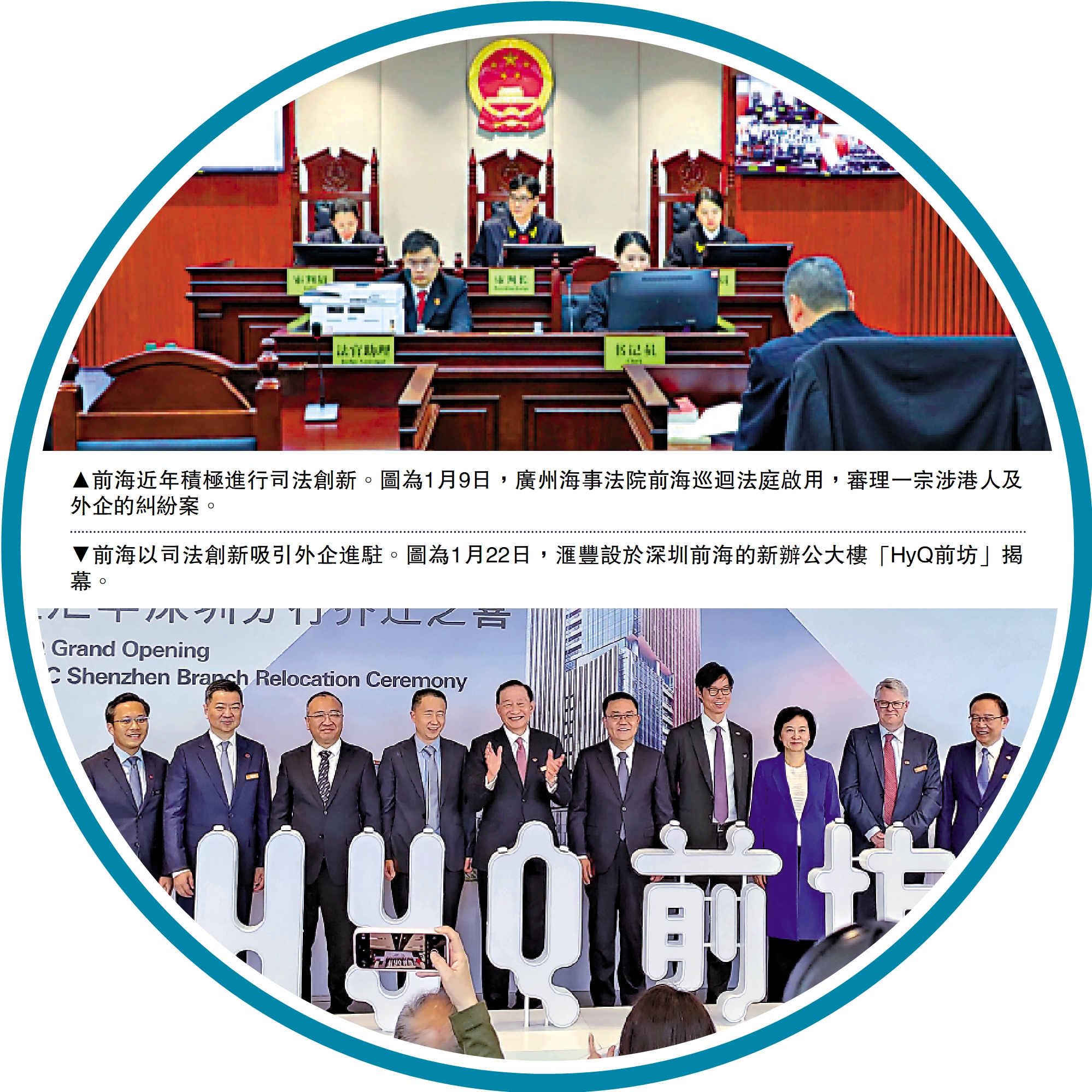 與橫琴粵澳深度合作區「規則銜接」、「機制對接」澳門的功能類似,前海的司法制度創新也是中央支持香港融入國家發展大局的重要體現。通過推動兩地法律規則銜接,前海為香港同胞提供了更加便利的營商環境和更高效的糾紛解決機制。