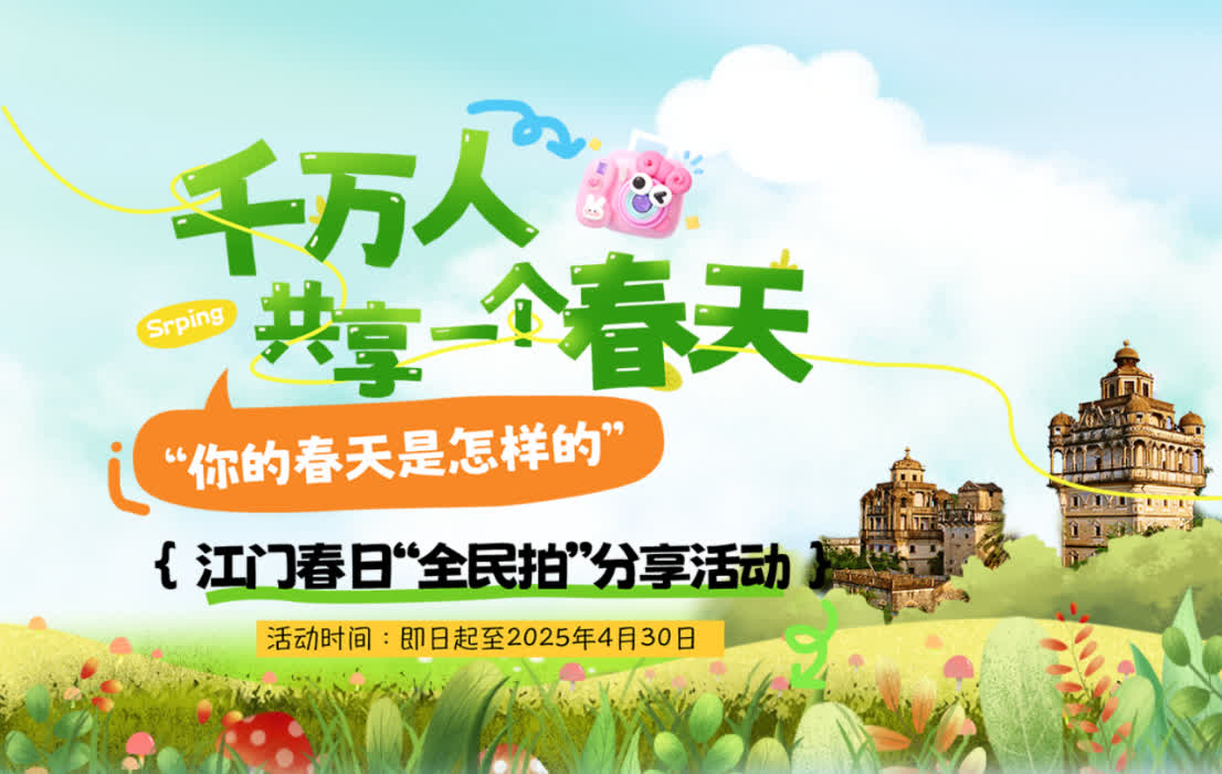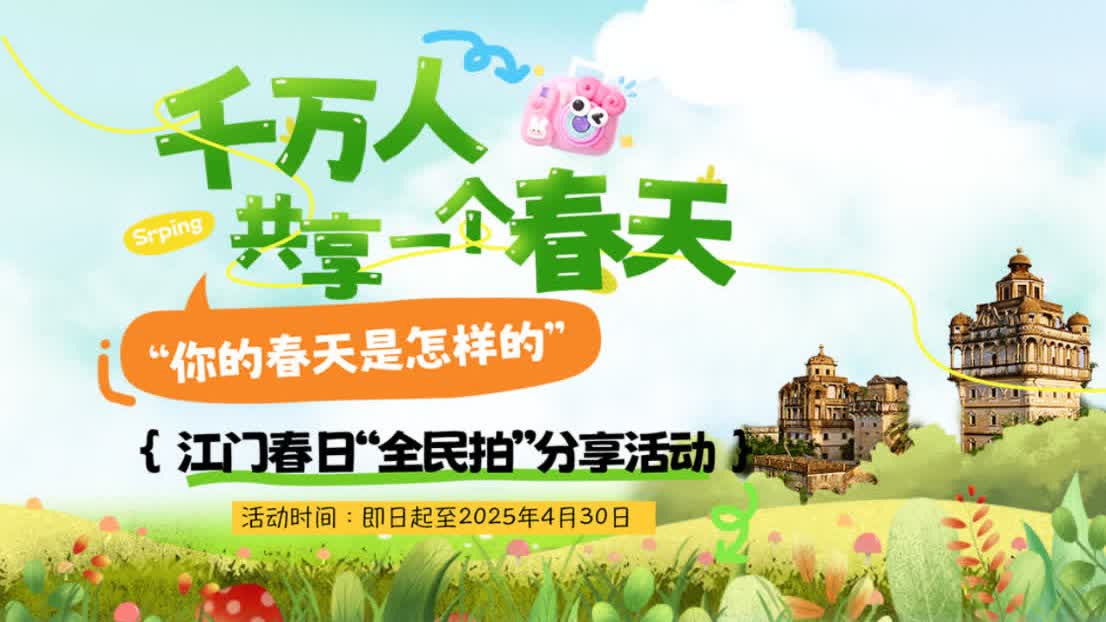 由江門市委宣傳部、市政府新聞辦主辦的「千萬人共享一個春天」江門春日「全民拍」分享活動近日開啟。無論你是江門人,還是江門籍港澳同胞、海外華僑華人,即日起至4月30日,都可以用鏡頭記錄下僑鄉江門的春日美景,分享你與春天的故事,講述對家鄉的思念、人生的感悟、時代的感恩……根據作品質量和傳播熱度,江門市委宣傳部、市政府新聞辦將綜合評選一批優秀作品並給予獎勵,快來參與吧!