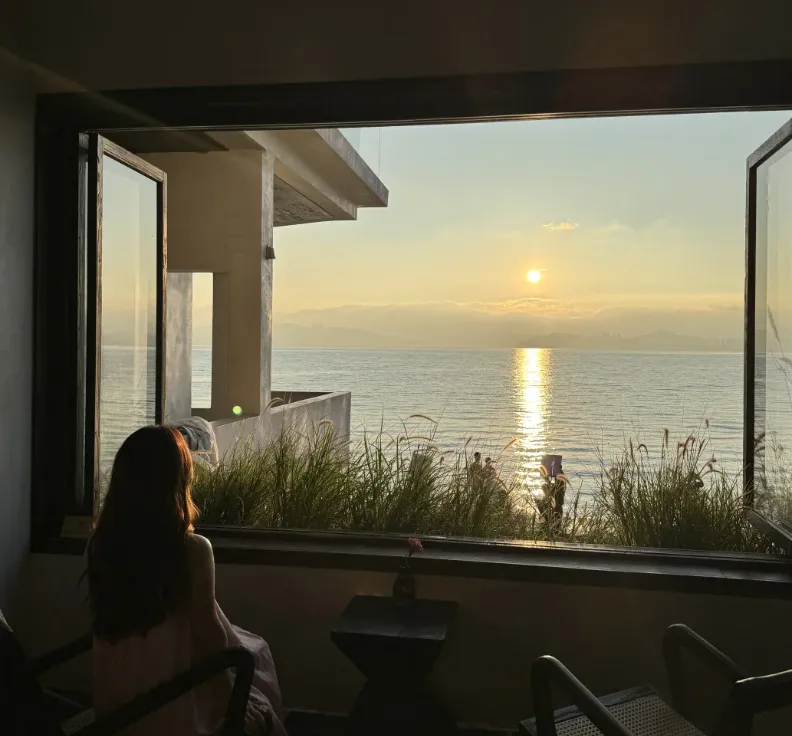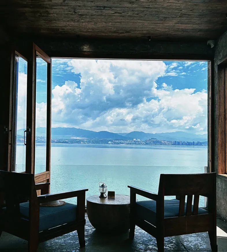 隨便找一個「海景」座位,推門就撞見一片波光粼粼的藍。晨霧未散時,這裏像座飄浮的宮殿,落地窗把蒼山雲絮、瀲灧水光統統框成會流動的裝飾畫。