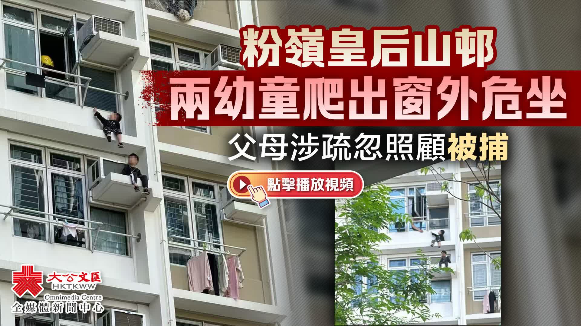 大公文匯全媒體報道,警方今日(21日)拘捕一對男女,涉嫌與粉嶺皇后山邨兩名年幼男童爬出窗外危坐的事件有關。事發於早上約10時半,警方接獲多名市民報案,指皇后山邨皇樂樓一個低層單位,有兩名年約3歲及5歲的男童,懷疑從單位爬出窗外,危坐於大廈外牆。