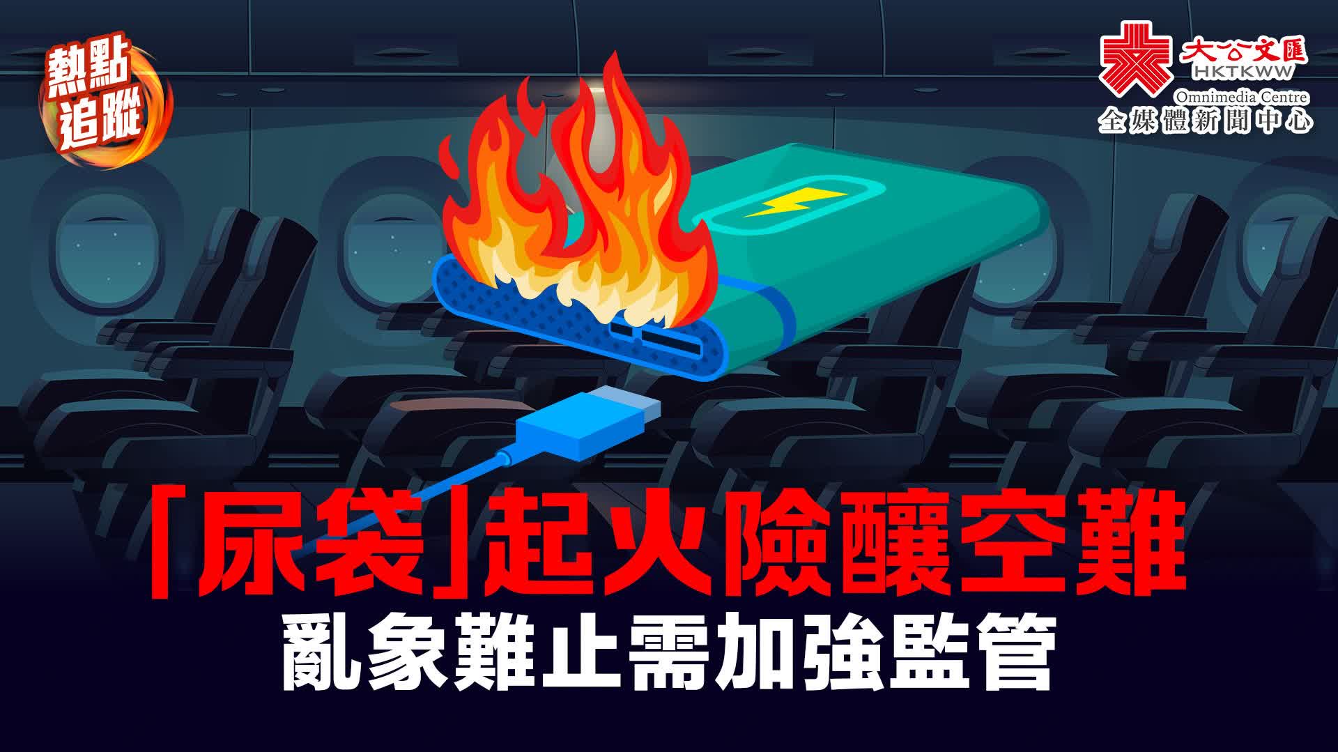 (大公文匯全媒體 實習記者 劉鴻霖 整理報道)香港航空一架由杭州返港客機日前因行李架突發火情緊急備降福州,起火原因疑因乘客放在行李架內的移動充電器(俗稱「尿袋」)起火。近期,多地「尿袋」過熱、起火事故頻發,移動充電器安全隱患引發社會高度關注。
