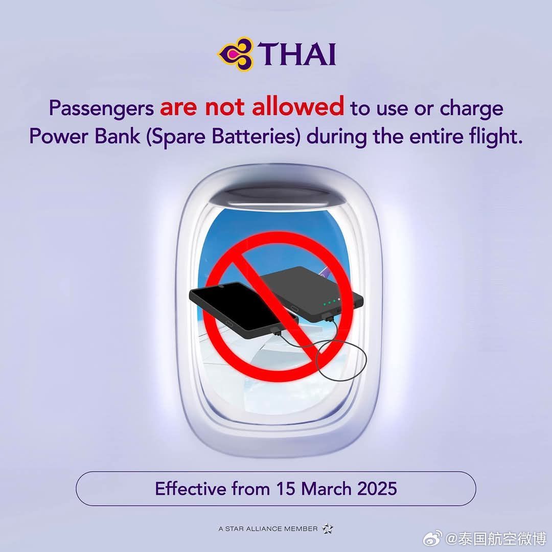 泰國航空、新加坡航空和酷航等國際航空也在不久前相機宣布,要求乘客必須將備用電源放置在手提行李內,且禁止在航班上給充電寶或備用電池充電。