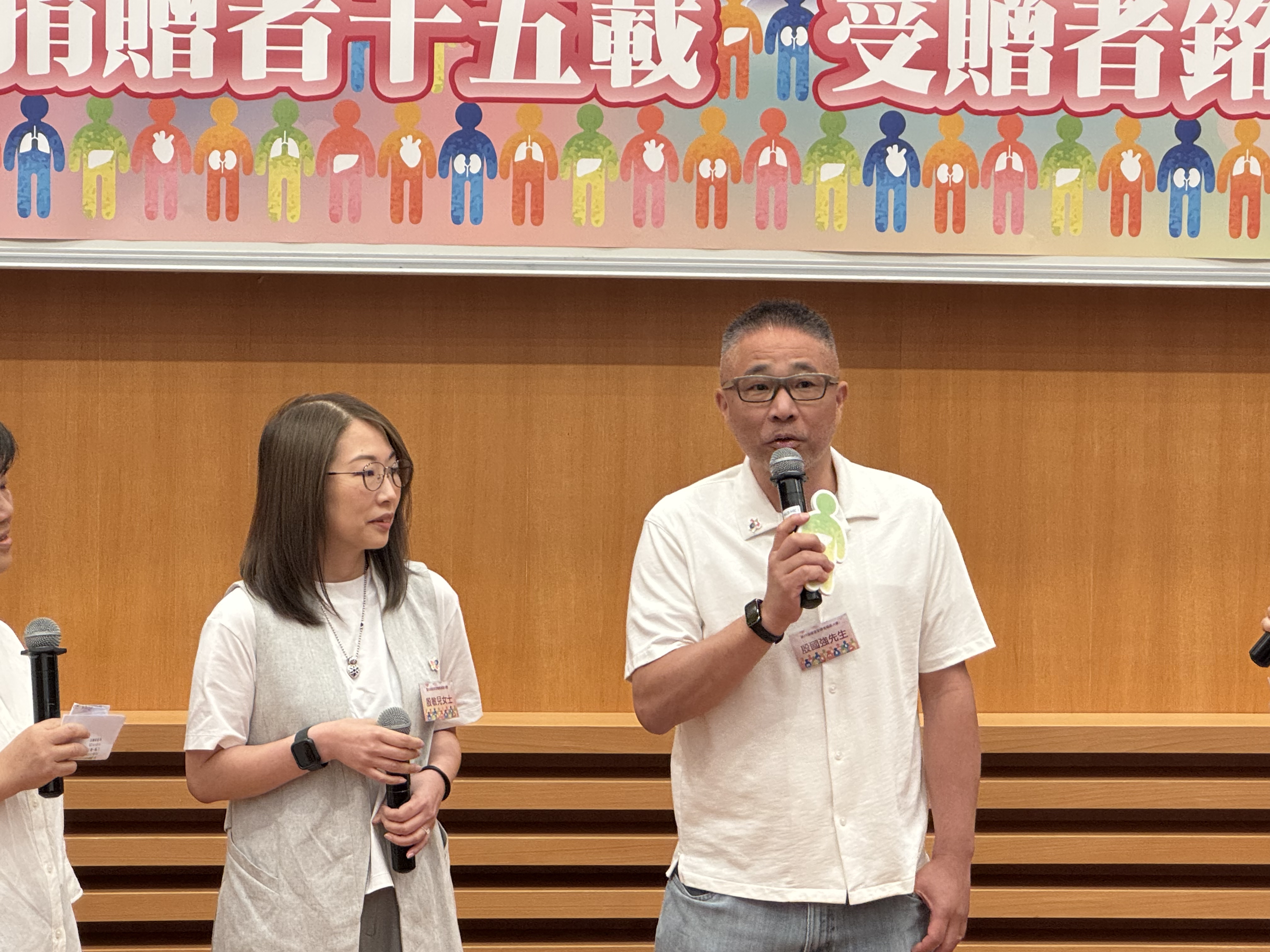 大會結尾,器官受贈者及嘉賓合影留念,衞生署健康促進處主任蘇佩嫦、立法會議員林哲玄、醫院管理局聯網服務總監鄧耀鏗等人亦出席活動。