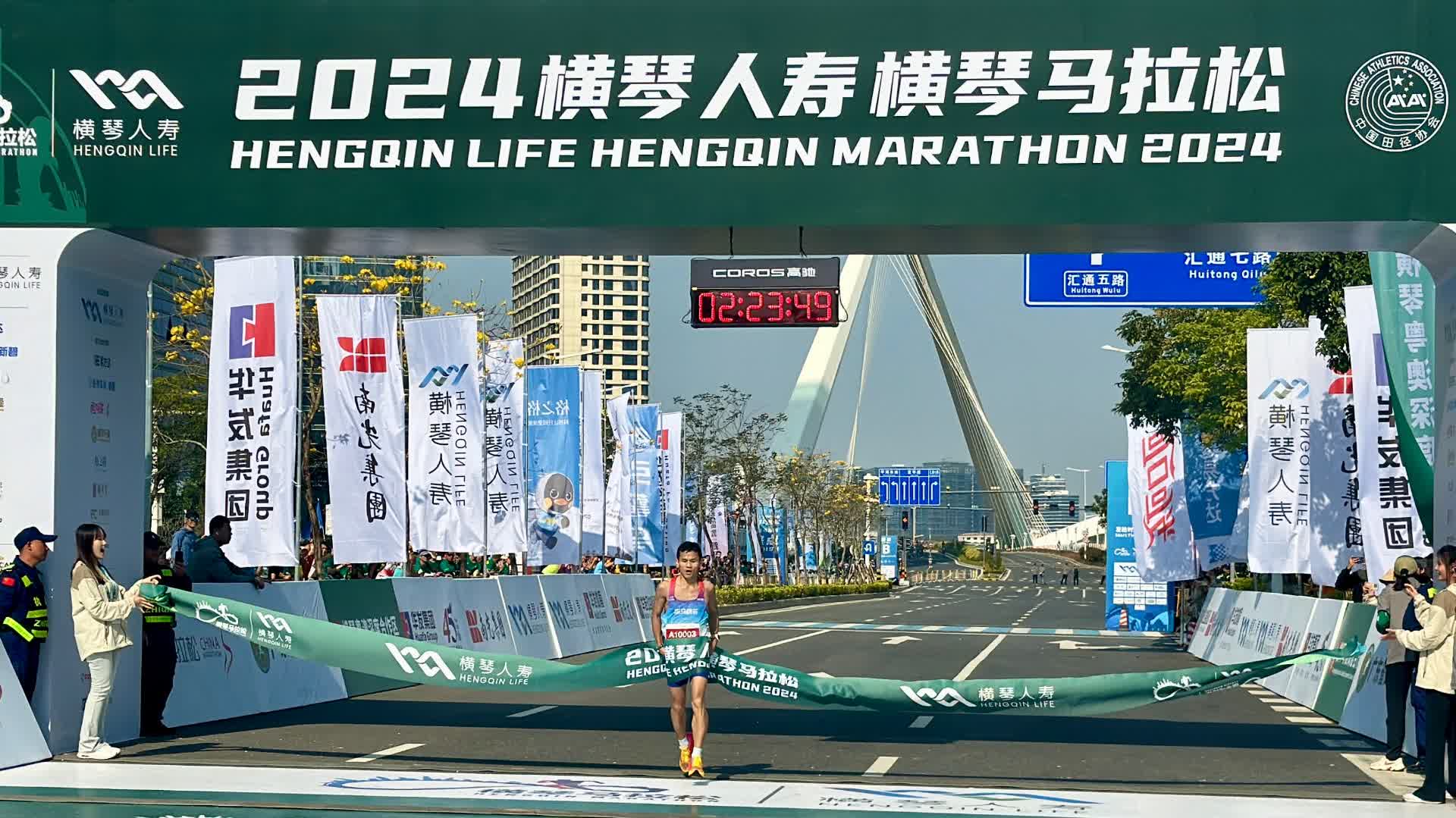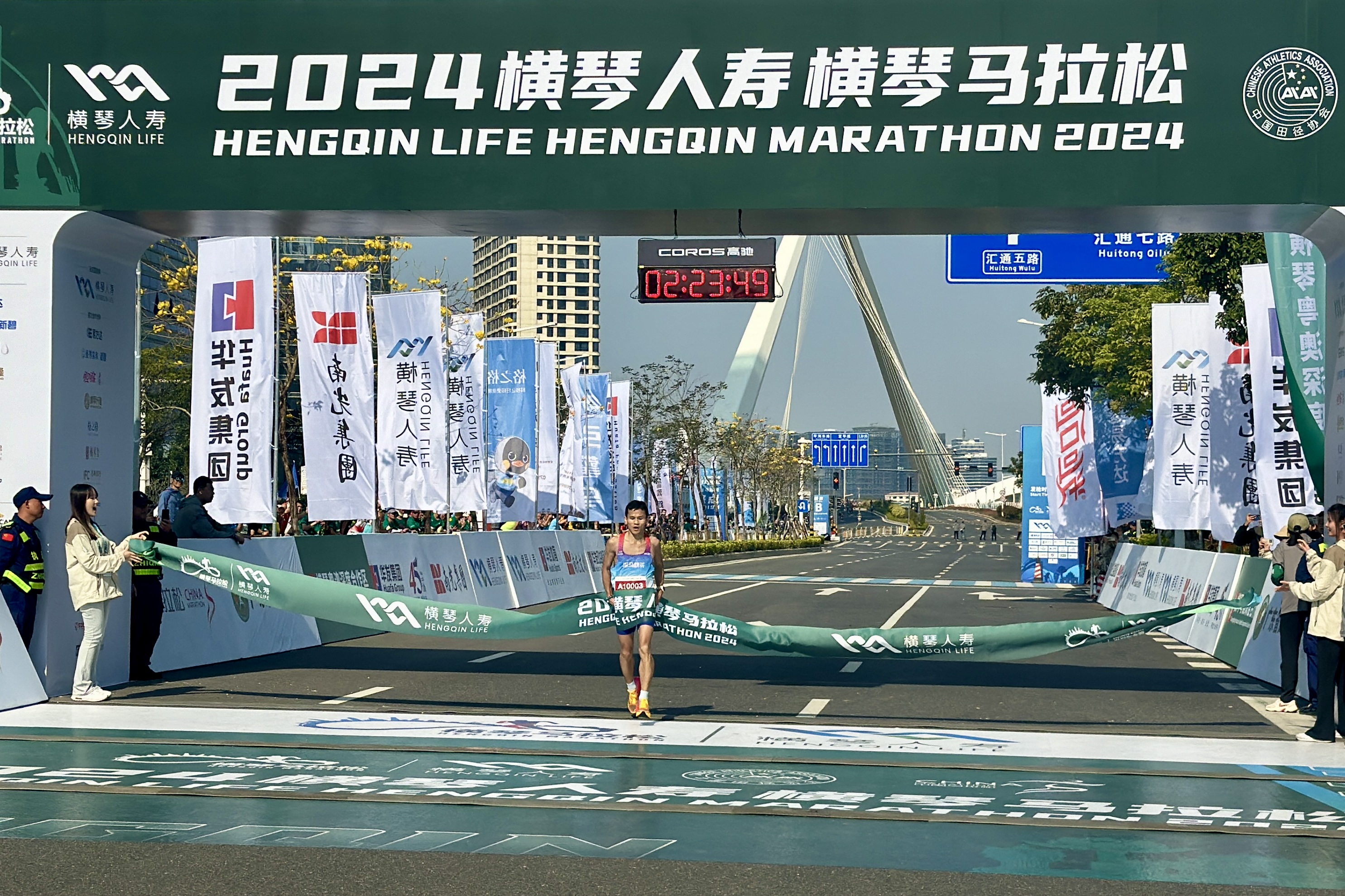 經過角逐,馬拉松組方面,來自廣州的梁文學以2:23:49的成績獲得男子組冠軍;來自廣州的韋春華以2:45:49的成績獲得女子組冠軍。兩人都是跑馬生涯首次獲得冠軍,言語間難掩欣喜。他們都表示,橫琴馬拉松的賽道平穩很利於跑者發揮,但當天的高溫天氣帶來不小挑戰,經沿途的及時補給、自我節奏調整之後,兩人最終都拿下冠軍。半程馬拉松組方面,來自肯尼亞的NGENO PETER以01:07:10的成績獲得男子組冠軍;來自江門的何芳以1:16:30的成績獲得女子組冠軍。