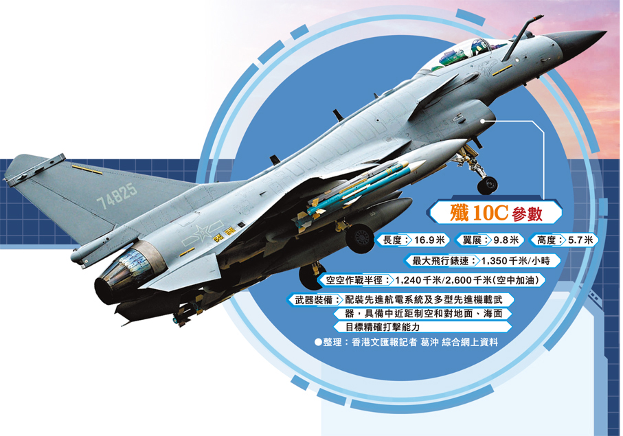 據介紹,殲-10作戰半徑大,起降距離短,攻擊能力強,綜合作戰效能達到國際同類戰鬥機先進水平。2008年11月,殲-10首次亮相珠海航展。連續大坡度盤旋、垂直爬升接「眼鏡蛇機動」、低空高速通場等動作,向世界展示了中國航空工業的跨越式發展。
