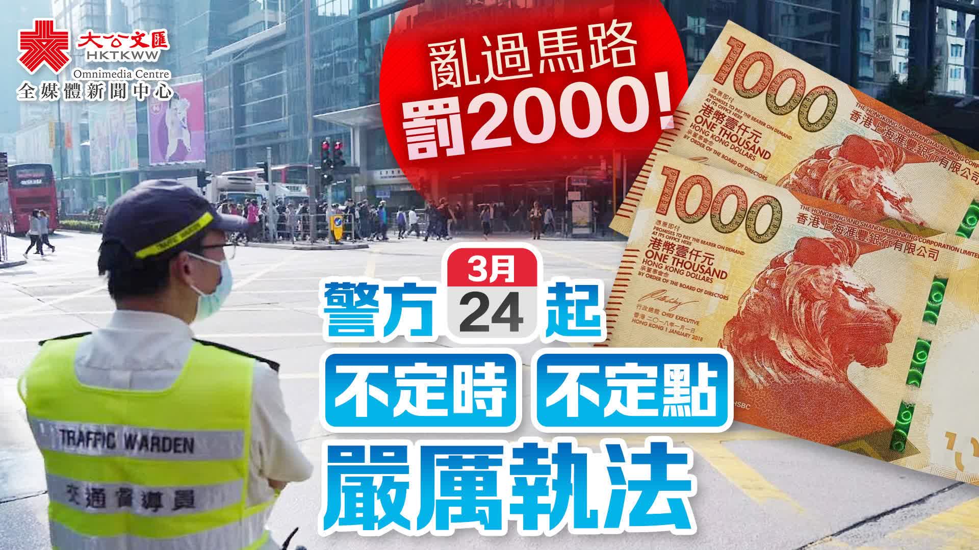 警方交通總部與五大總區交通部人員,今日(24日)起於全港各區不定時、不定點進行大型嚴厲執法,更會配合便裝及高點攝錄,打擊不小心駕駛、超速、不遵守交通燈號過馬路,無使用行人過設施等常見違規,務求提高市民大眾的守法和道路安全意識。