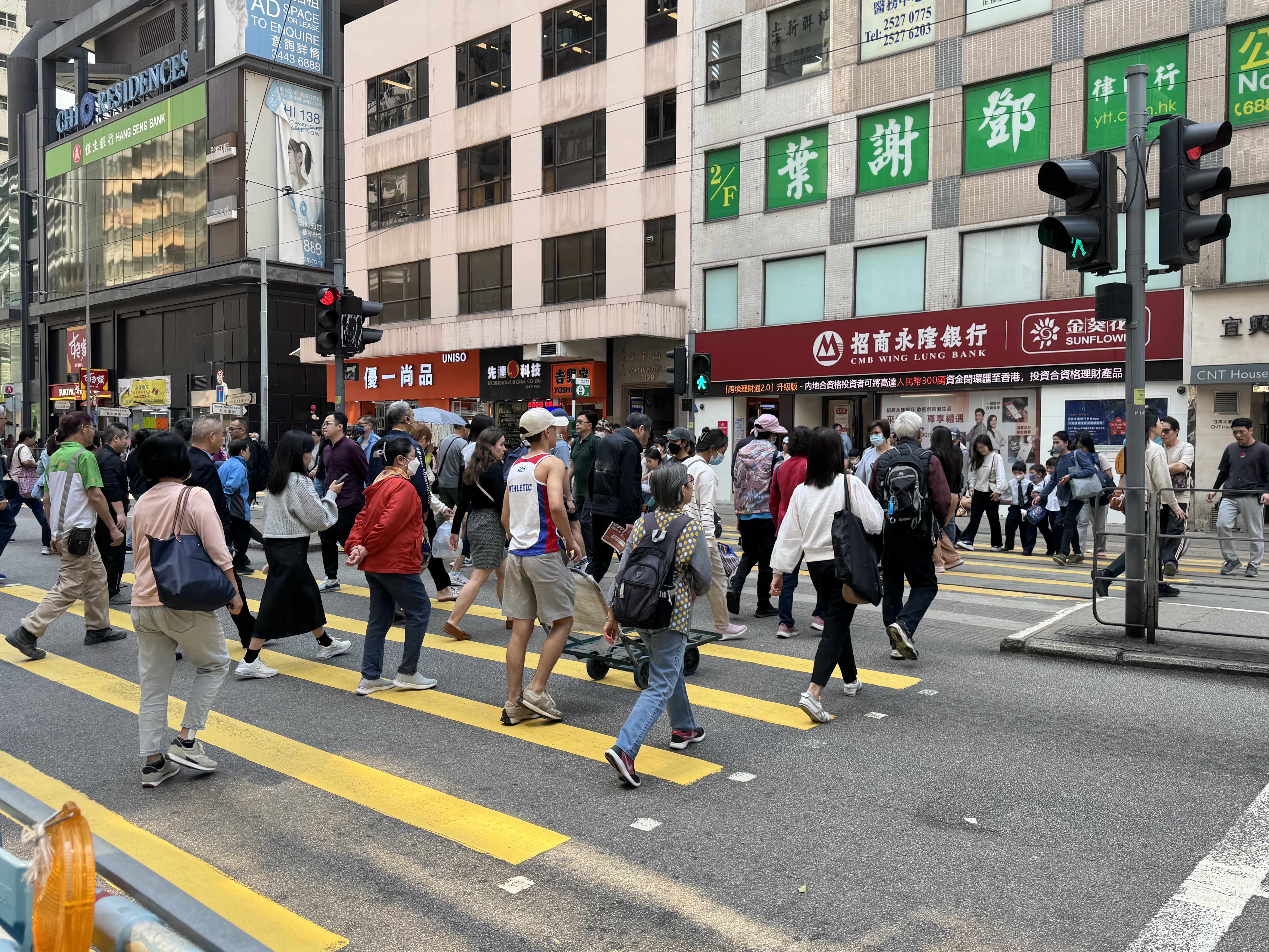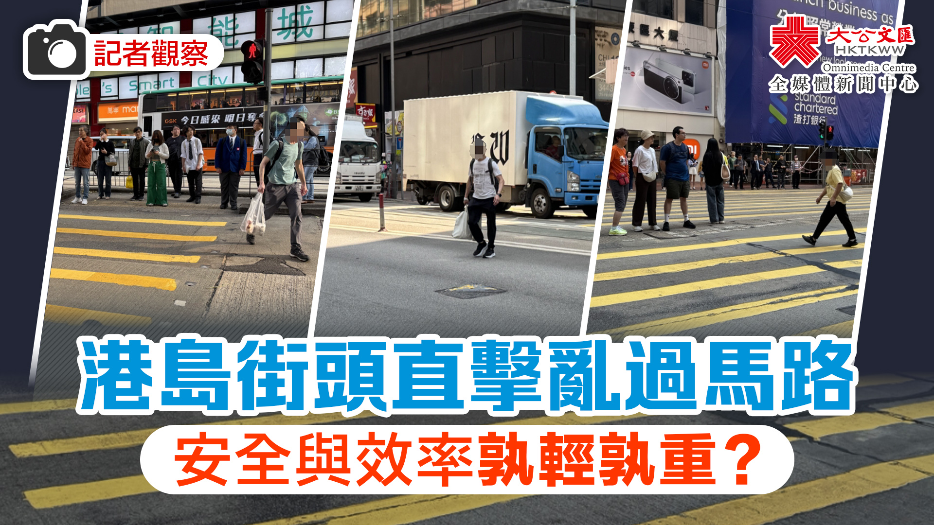 (大公文匯全媒體 記者 陳子萌)午休時間,港島的街上變得繁忙起來,各個路口擠滿往來的市民。「滴滴滴」,香港標誌性的斑馬線過路提示聲音響起,兩面的行人有序地穿插着通過路口,到達街對面,隨後去向不同目的地。然而,也有行人無視交通規則,做出闖紅燈等亂過馬路的行為。