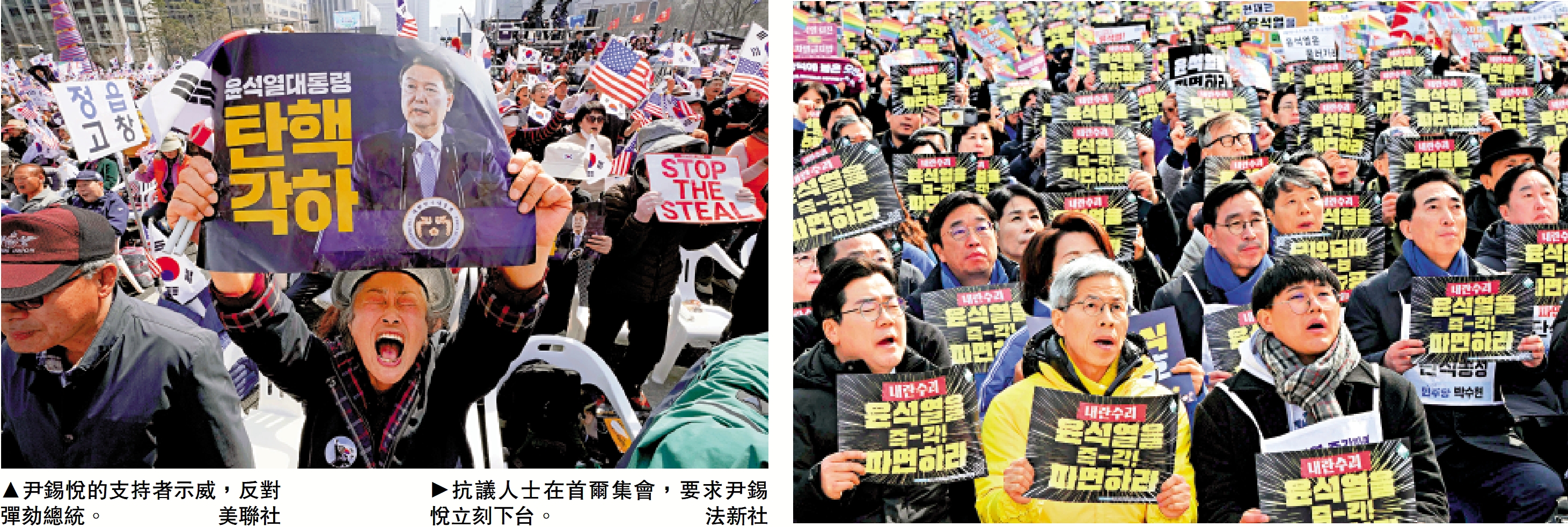 •韓國蓋洛普21日公布的民調顯示,支持彈劾尹錫悅的受訪者佔58%,反對彈劾的佔36%。