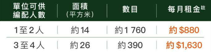 根據房屋局簡介,第一期即將允許入伙的攸壆路項目,提供約2150個單位(包括一至二人、三至四人),每月租金約880元至1,630元。