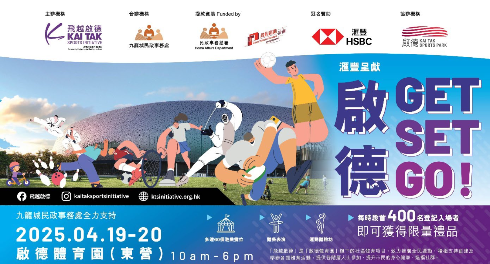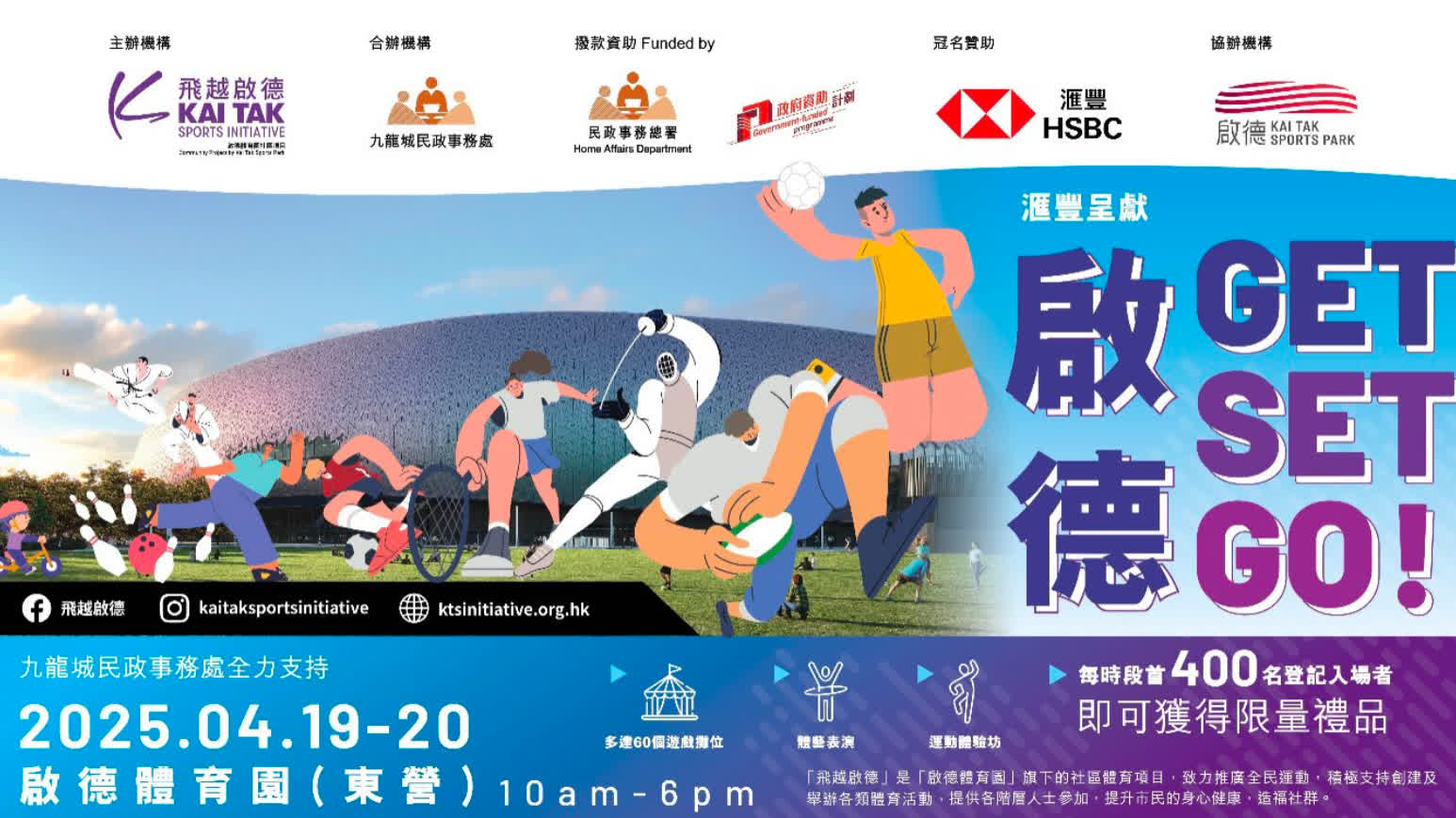 大公文匯全媒體報道,由飛越啟德及九龍城民政事務處合辦、啟德體育園協辦、滙豐冠名贊助的首個啟德體育園大型社區嘉年華「啟德GET SET GO!」將於今年4月19及20日在啟德體育園「東營」盛大舉行。活動將匯聚超過60個攤位遊戲、運動體驗及連串精彩表演,讓市民在充滿活力及動感的嶄新場地享受運動的樂趣。