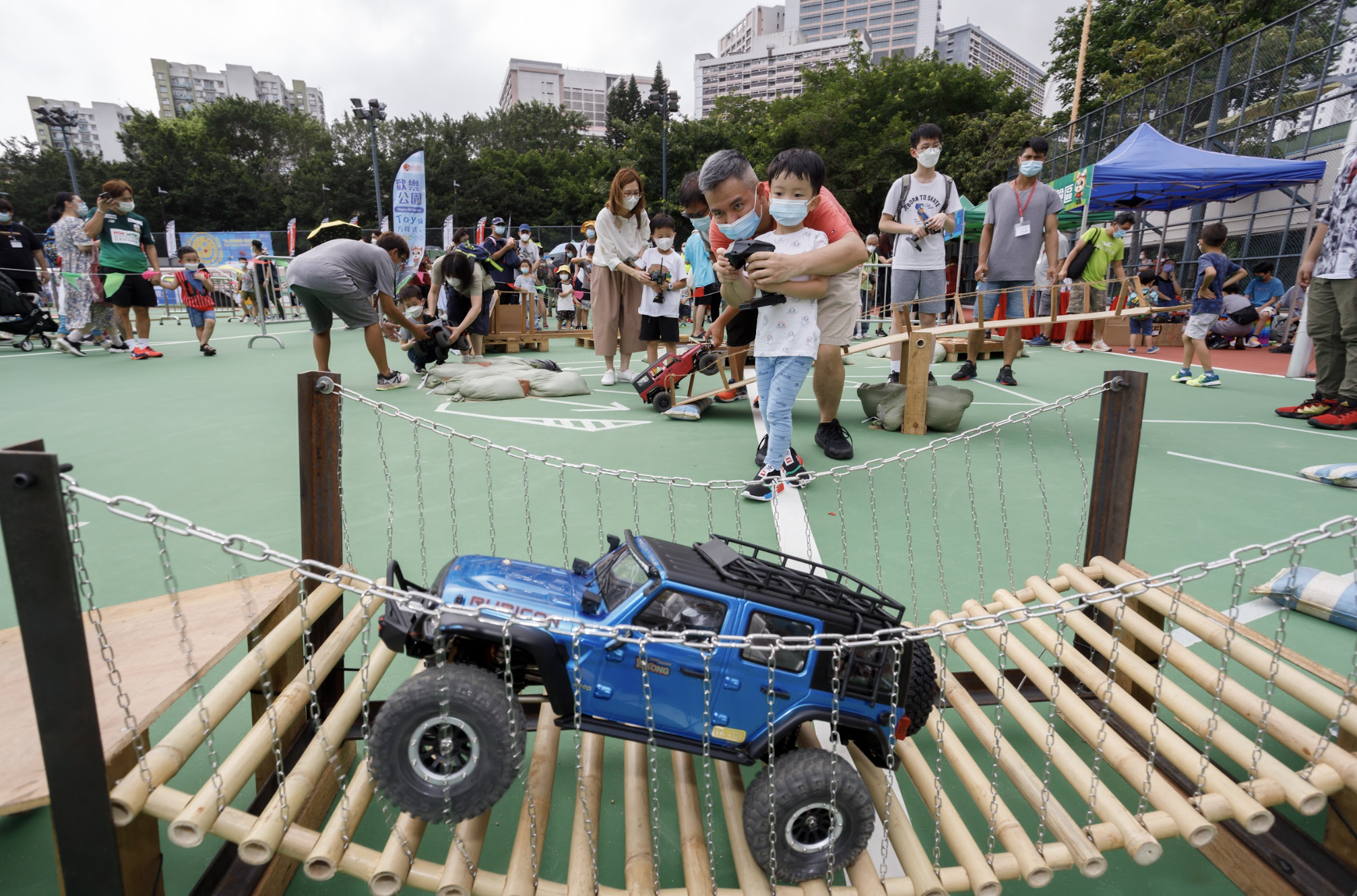 遙控模型爬山車試玩區:活動結合了科技與競技性,讓參加者在導師指導下,學習在崎嶇賽道上操控遙控模型爬山車,享受征服險峻道路的樂趣。