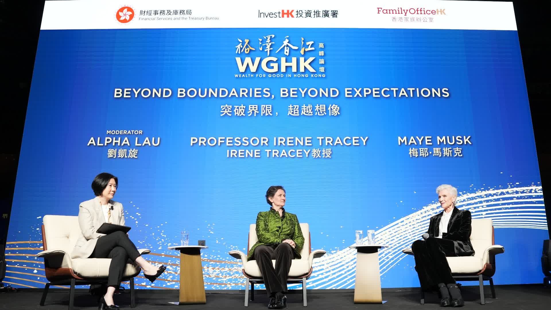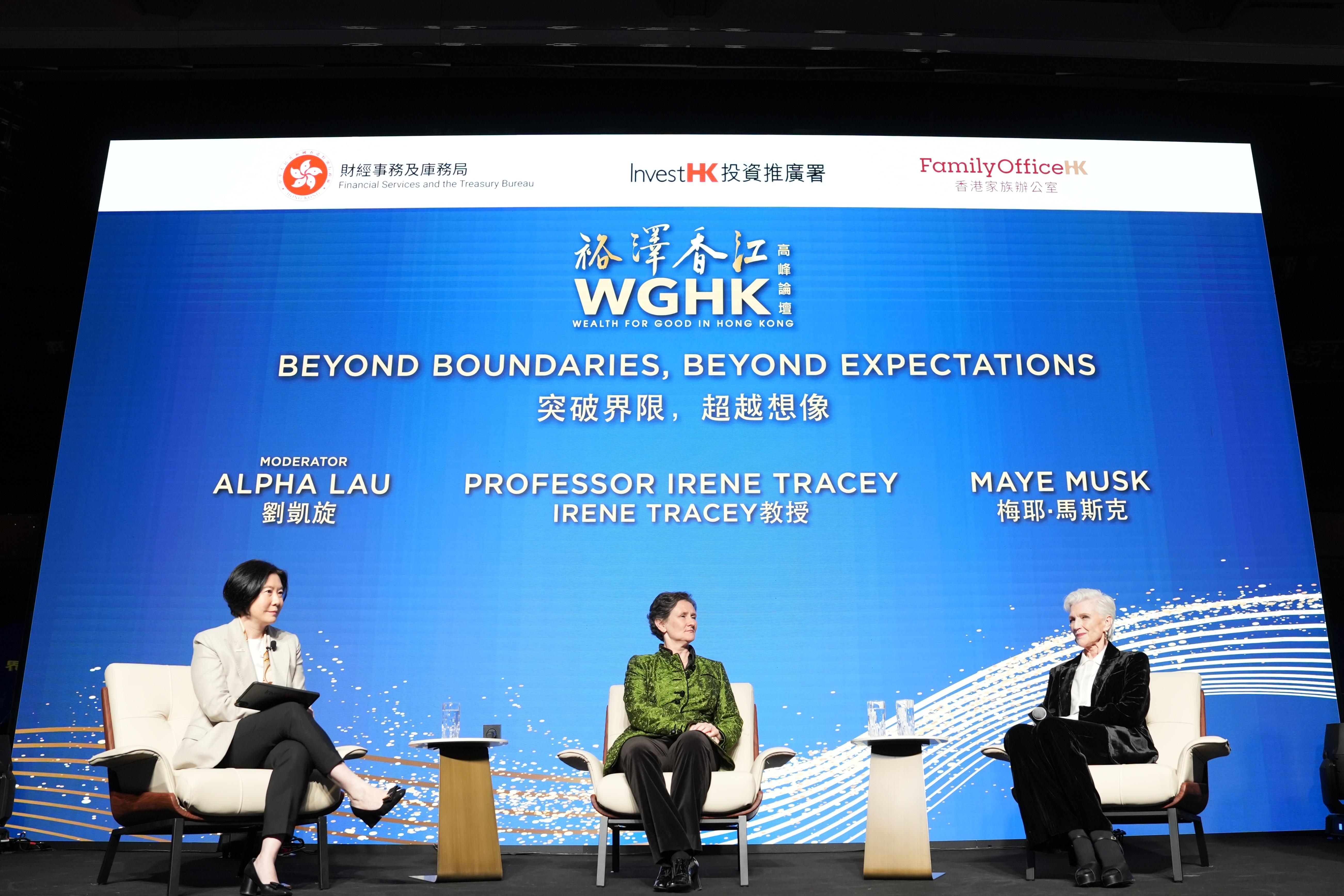 是次晚宴特別邀請了著名講者——暢銷書作家兼公共演說家Maye Musk博士及牛津大學校長Irene Tracey教授,進行一場極富啓發性的對話環節。對話環節由投資推廣署署長劉凱旋主持,兩位講者分享她們在女性領導力與傳承方面的精闢見解,並集中探討女性領袖在推動商業、創新及社會發展中的關鍵角色。二人的精彩分享為晚宴生色不少,也為明日以「香港—為全球,向世界」作主題的高峰論壇鋪墊,營造濃厚的交流氛圍進行深入討論與建立嶄新的合作關係。