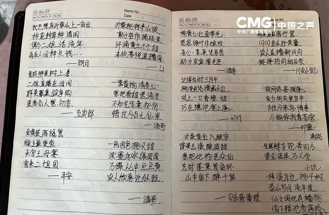 起初,呂玉霞的視頻裏,幾乎全是一家人生活日常,直到2024年的3月,她第一次對着鏡頭讀出了寫在筆記本上的詩。「我落筆寫下詩句千行,寫我曾經的年少輕狂……」,讓呂玉霞無論如何也沒有想到,「開始『起飛』了」,短短一個星期,粉絲增加了20多萬。