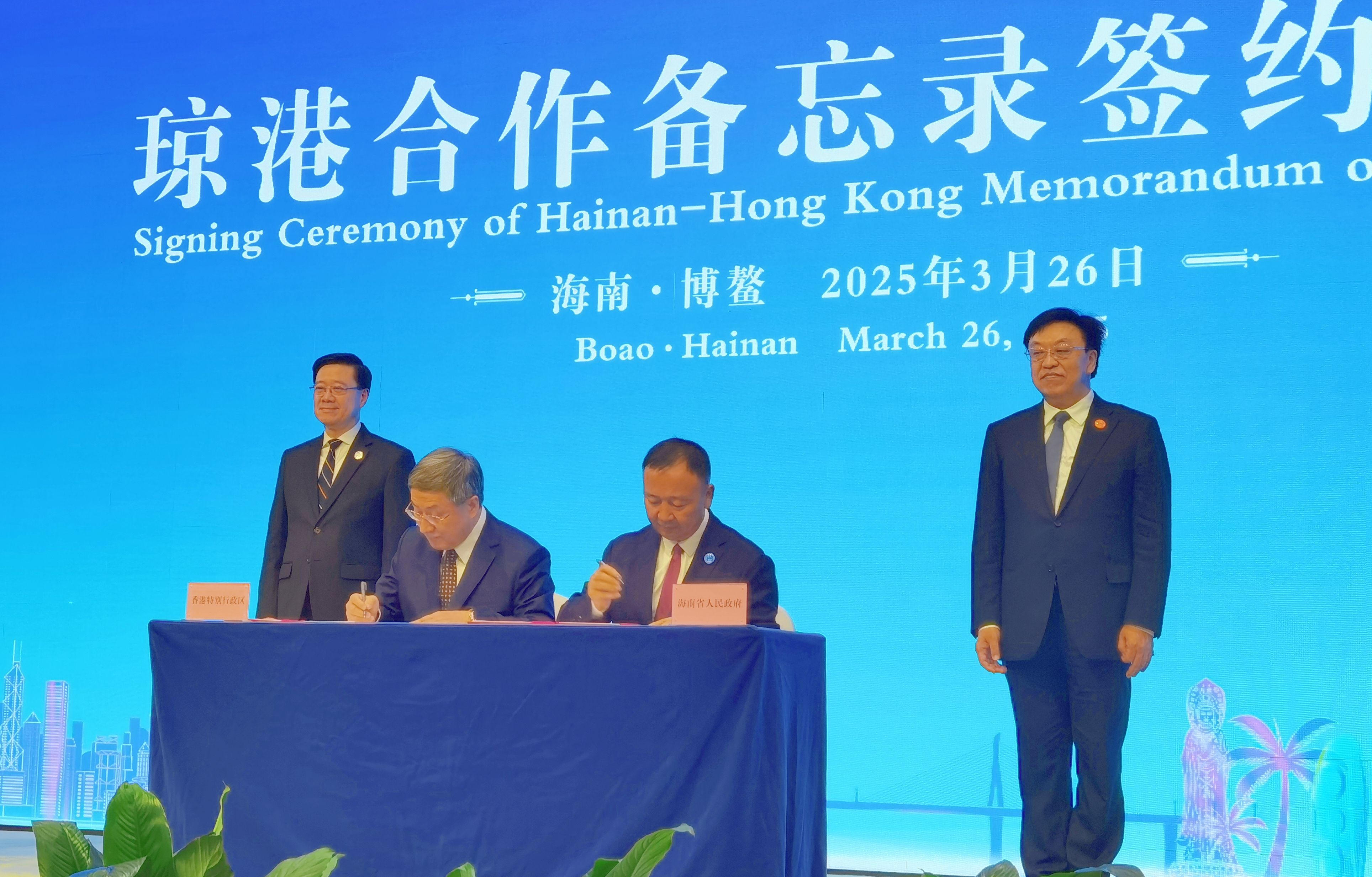據悉,此次簽署的《備忘錄》聚焦瓊港共同關注點,探索可操作、能落地的合作項目,推動實現海南自貿港地緣優勢、資源優勢與香港發展優勢、開放優勢、國際網絡優勢的疊加放大,合力提升區域影響力、輻射力,共涵蓋5大領域、13項內容、1個附件。
