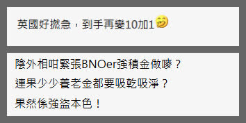 還有網友看出英國正急不可耐地想「撈金」,「英國這麼緊張移英港人的強積金幹嘛,連養老金都要吃乾抹淨嗎?果然強盜本色!」