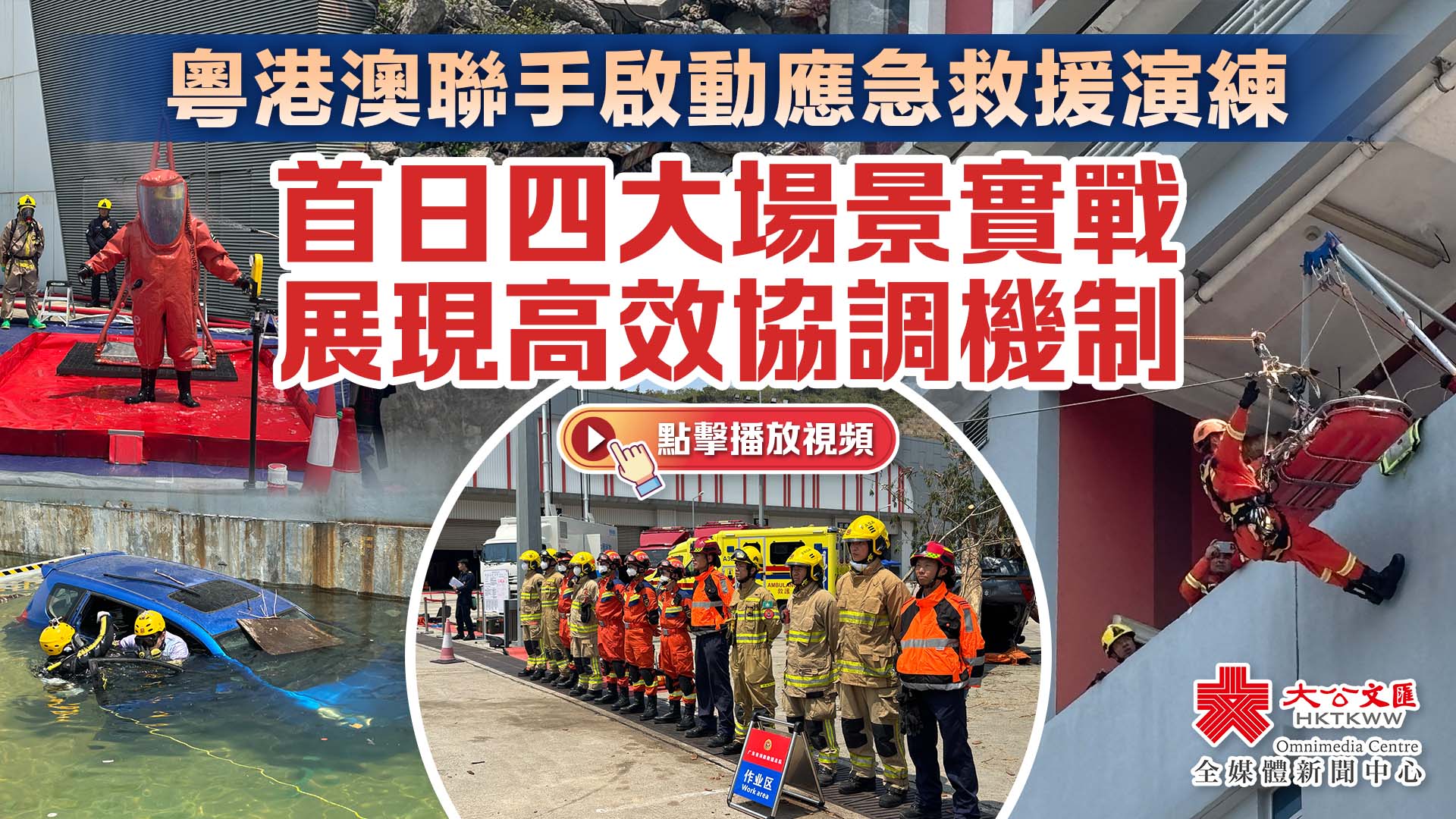 (大公文匯全媒體記者 鄭洢林)為提升粵港澳大灣區應對極端災害的聯合救援能力,香港消防處聯同廣東省消防救援總隊及澳門消防局,自今日(26日)起展開為期3日的「聯城─2025」大規模應急救援聯合演練。首日演習聚焦四類高風險災害場景,模擬颱風及暴雨引發的多重危機,三地逾百名救援人員動用尖端裝備,成功完成高空、交通、坍塌及水浸救援任務,展現跨域協作與科技應用的深度融合。