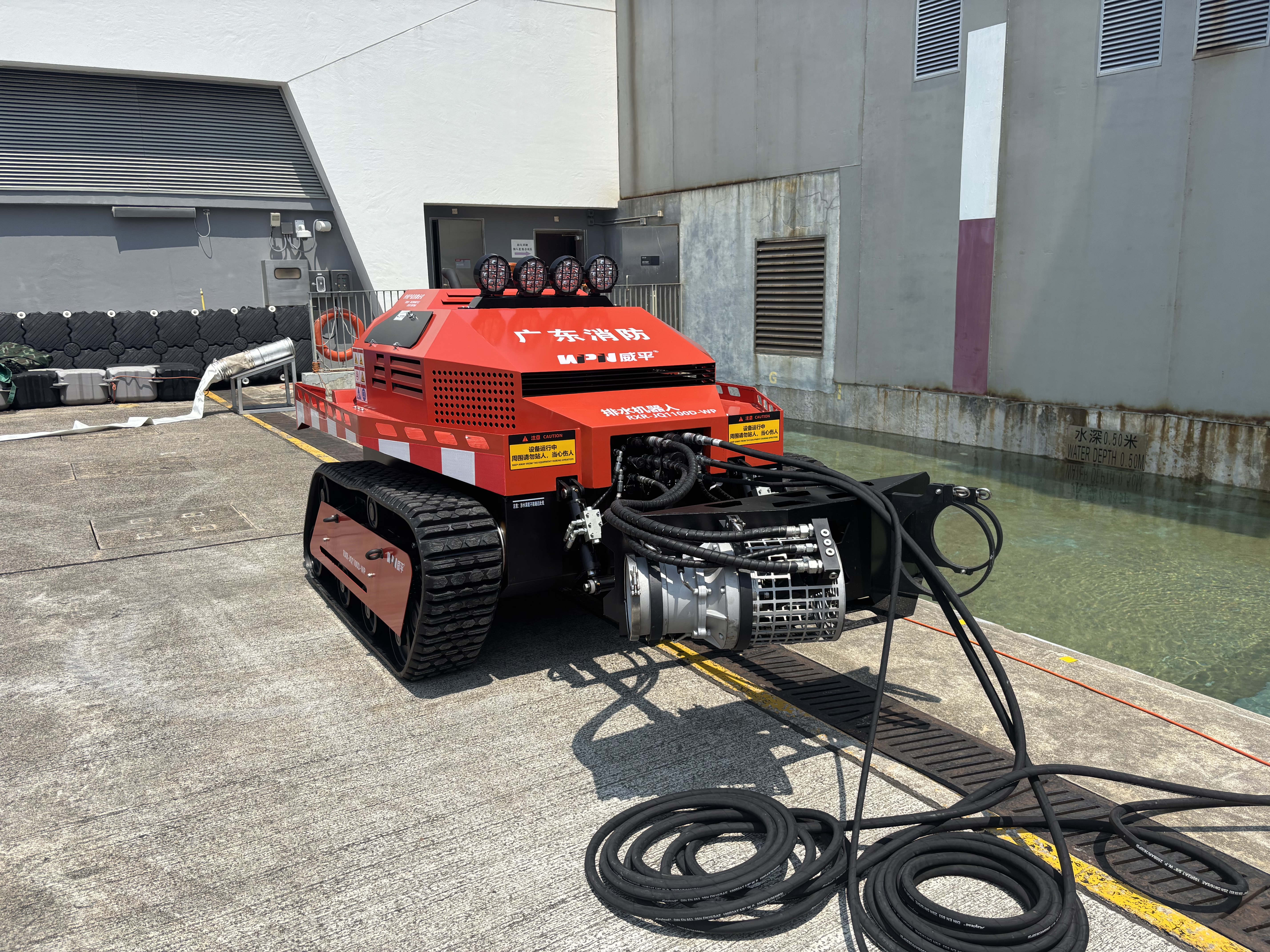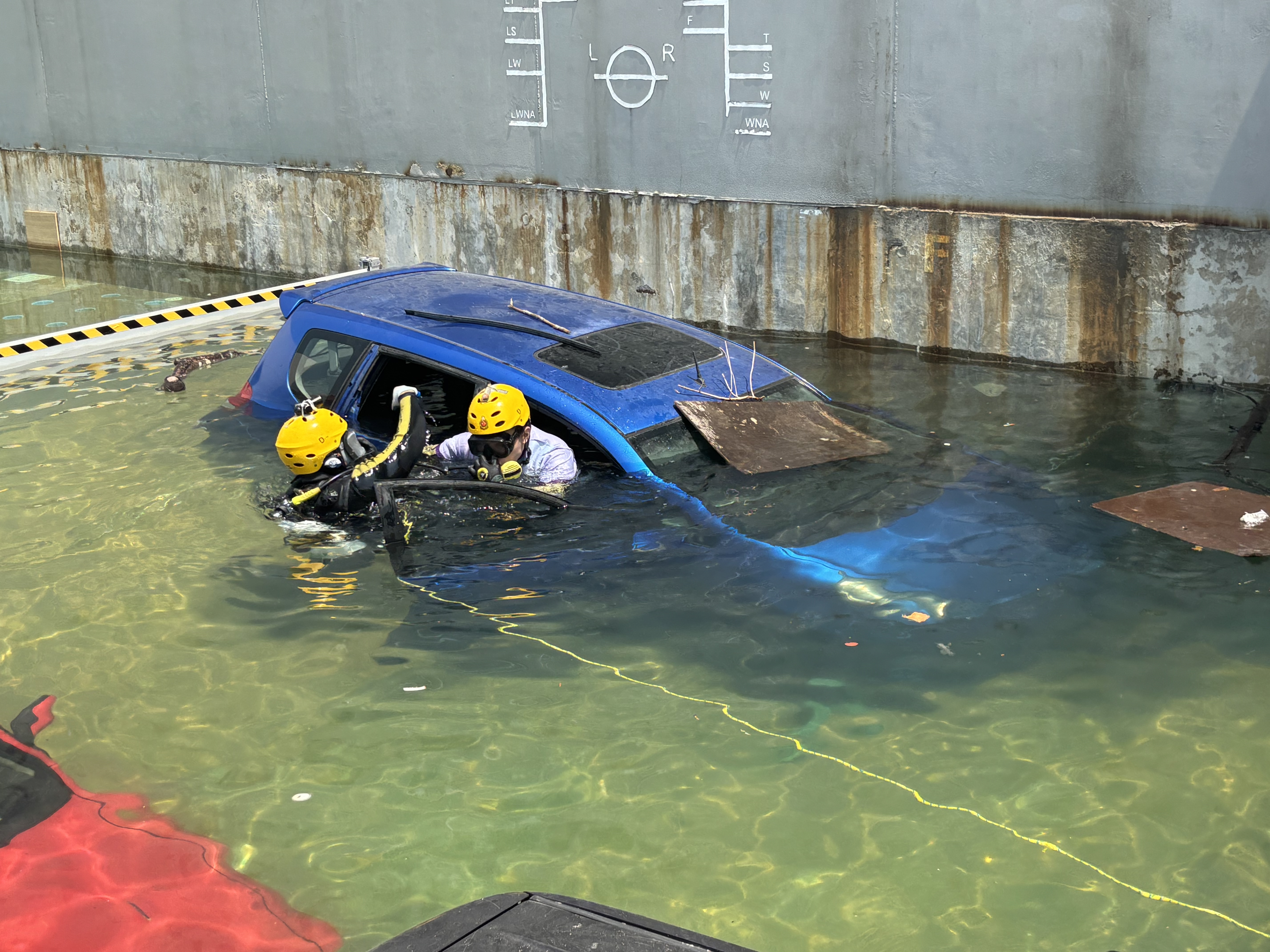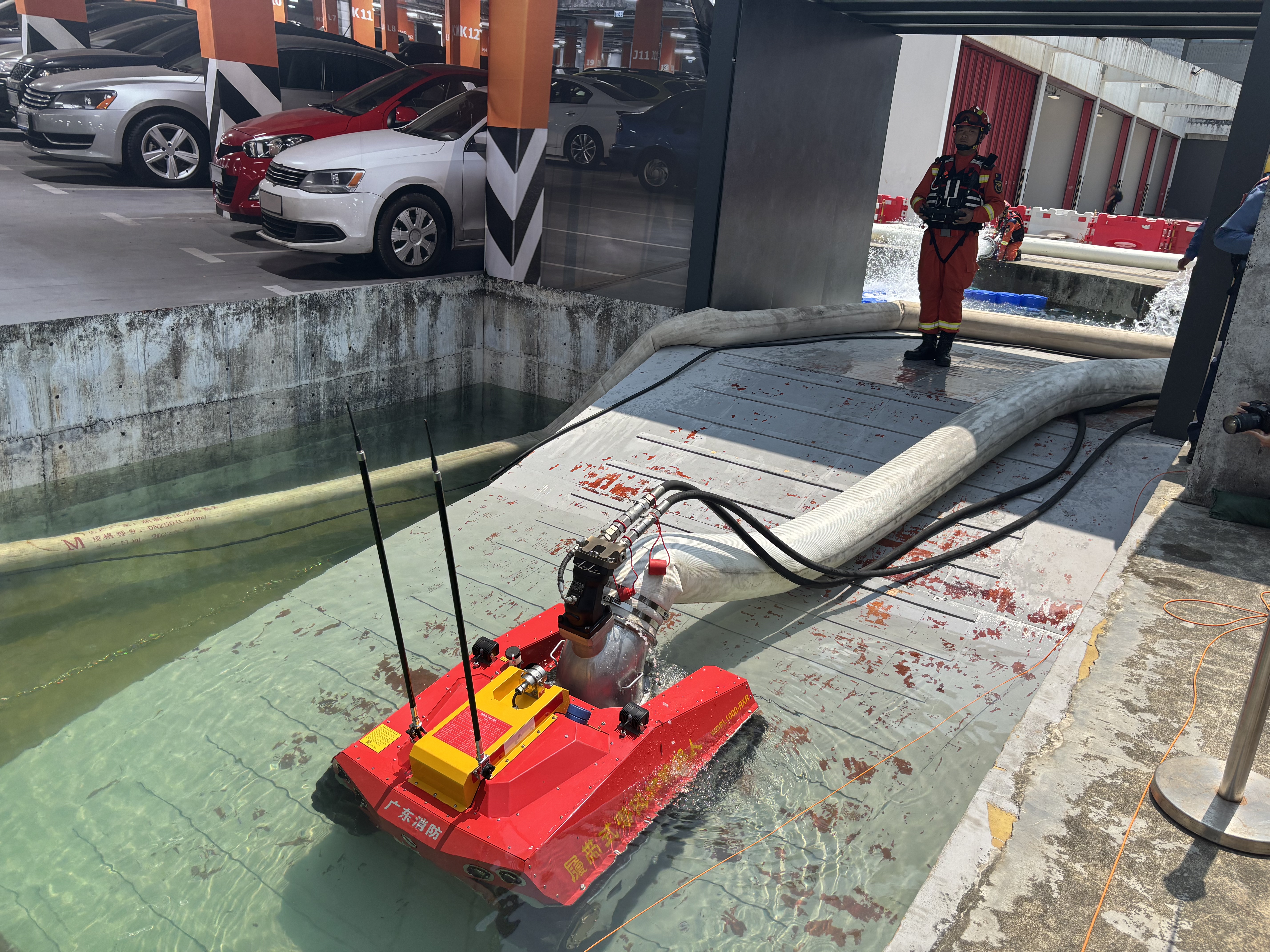本次演練的重點之一是模擬地下停車場水浸救援,由香港消防人員擔任總指揮及搜救人員,並安排潛水員進行水面及水下搜救,廣東省消防救援總隊首次在港運用排澇機械人抽走水浸的積水,功率達每小時1100立方米。