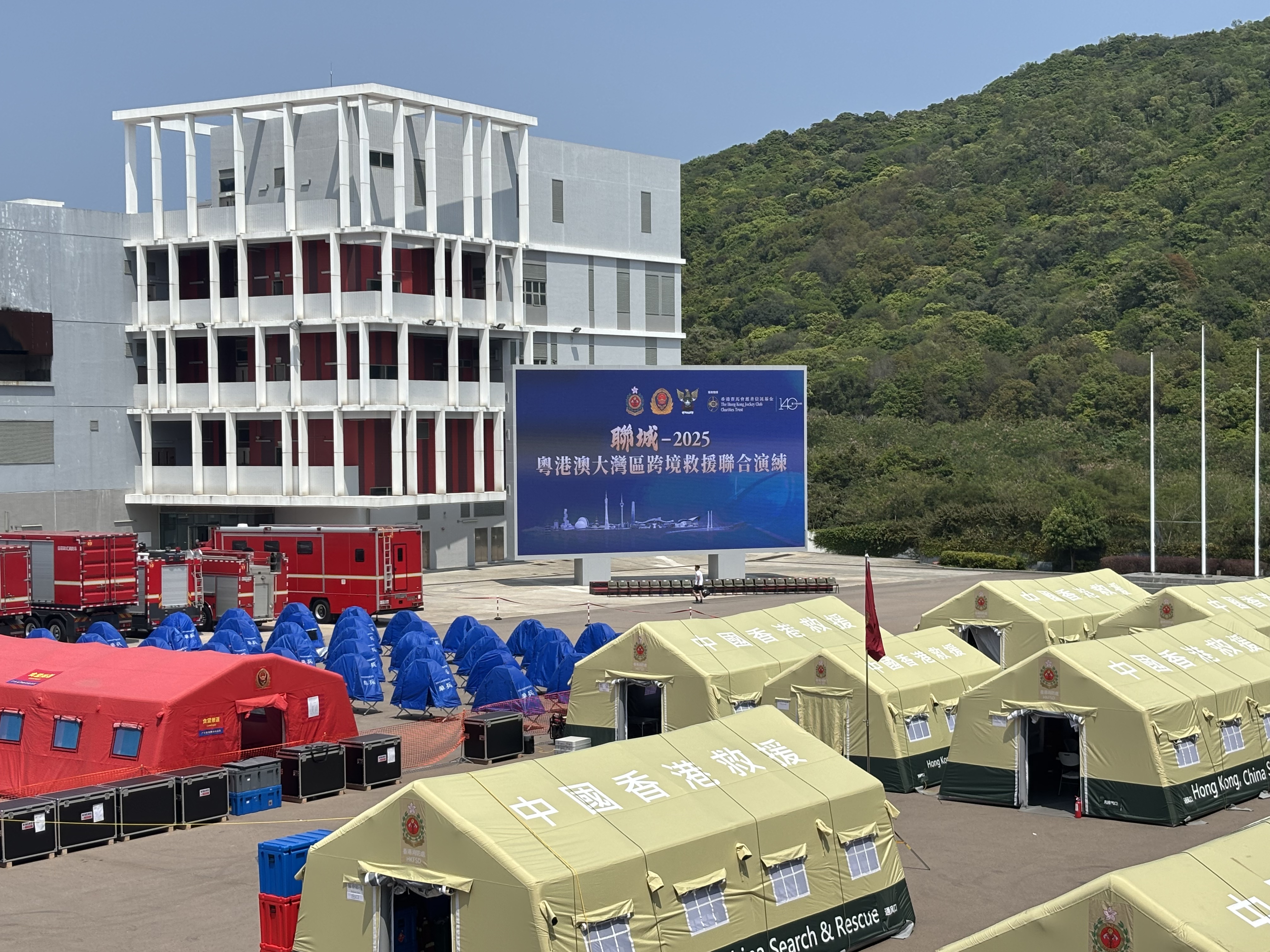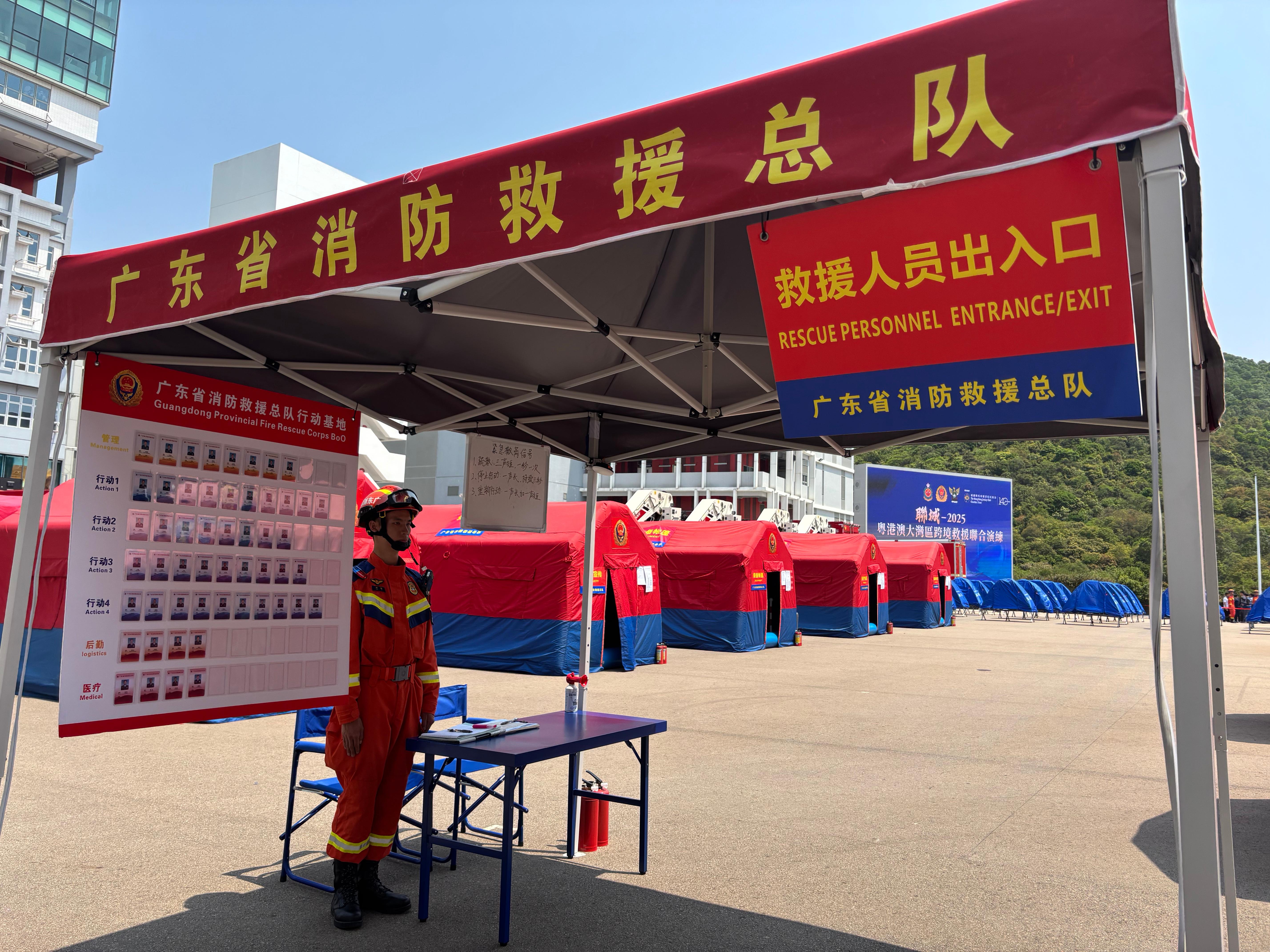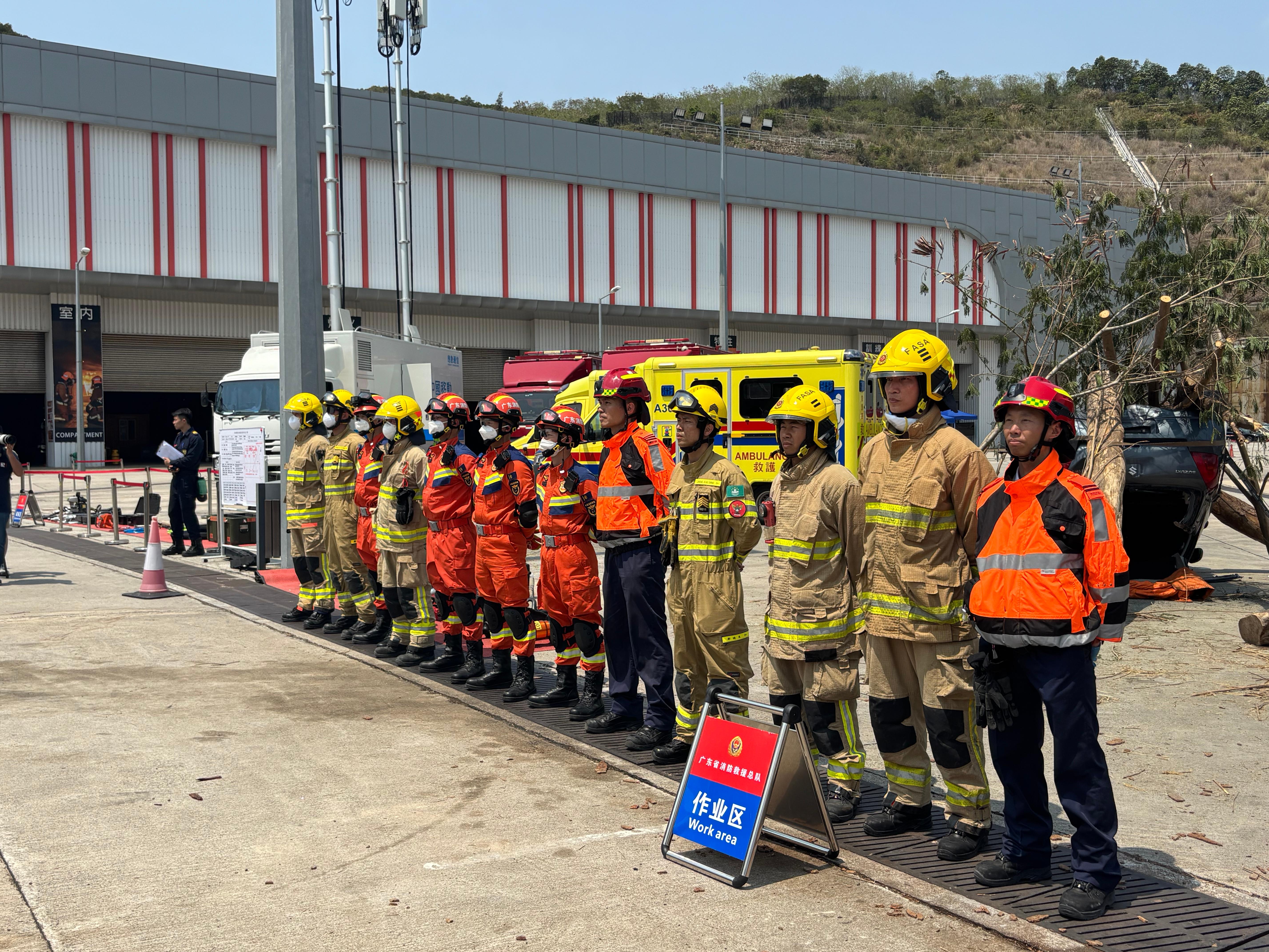 消防處處長楊恩健指出,此次48小時的聯合救援演練,模擬香港遭遇特大颱風及暴雨襲擊,觸發大規模水浸及塌樹事故。演練中,廣東省首次派遣60名救援人員、13輛消防車及排澇機械人來港,澳門亦派出15人與5輛車支援,兩地隊伍透過「綠色通道」僅耗4小時抵港,展現高效協調機制。
