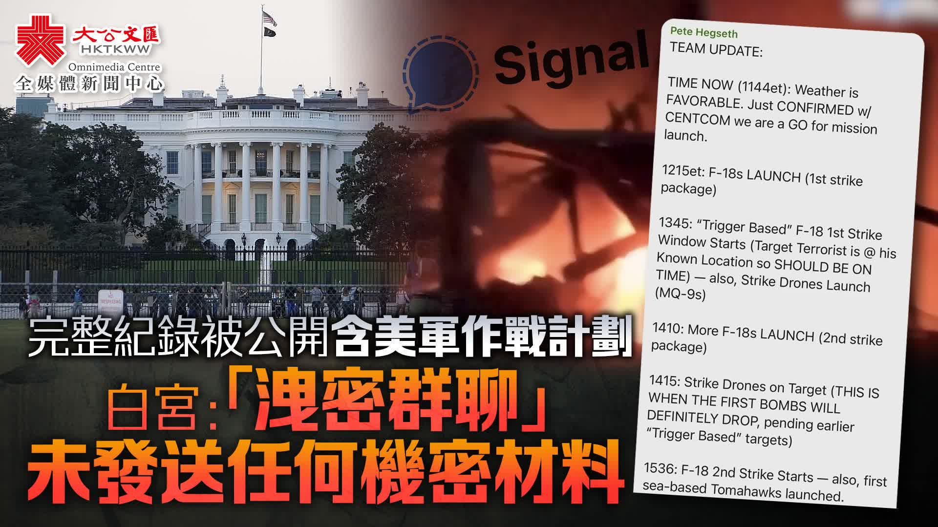 大公報綜合報道,美媒《大西洋月刊》總編輯戈德堡被國安團隊高層拉入Signal涉密群聊,並提前知曉美軍空襲也門胡塞武裝計劃的事件引發政治地震。美國總統特朗普、國防部長海格塞斯等人試圖淡化事件影響,否認該群組中曾分享作戰計劃等機密信息。戈德堡26日放出該群聊內容的全部截圖,其中可見海格塞斯發布的訊息涉及作戰計劃的時間、涉及的戰機型號和導彈等。