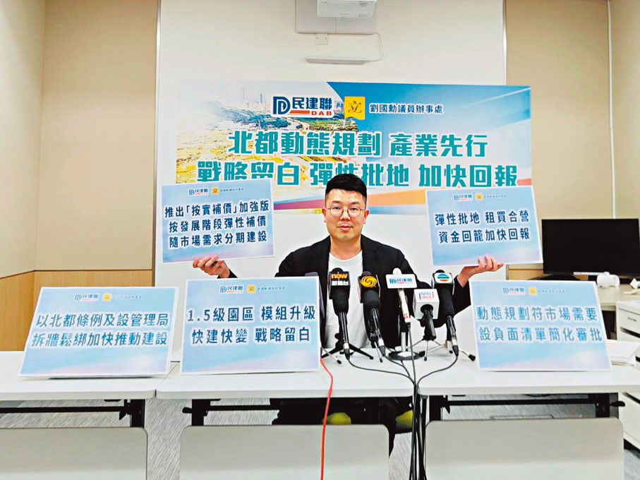 民建聯發展事務發言人、立法會新界北立法會議員劉國勳表示,按實補價及修改短期租約條款,可加快發展商在北都區落實發展項目。