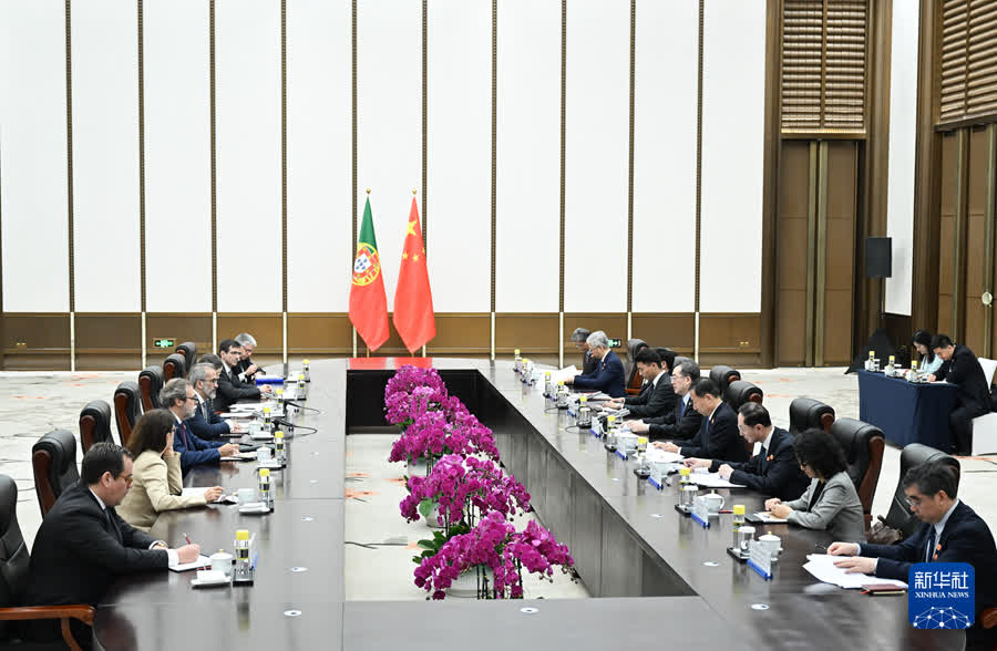 在會見蘭熱爾時,丁薛祥表示,去年中葡建交45周年之際,習近平主席同德索薩總統互致賀電,為兩國關係發展提供了遵循。今年是中葡建立全面戰略夥伴關係20周年。中方願同葡方一道,在兩國元首戰略引領下,堅持互尊互信,拓展互利合作,深化開放交流,推動兩國關係不斷邁上新水平。