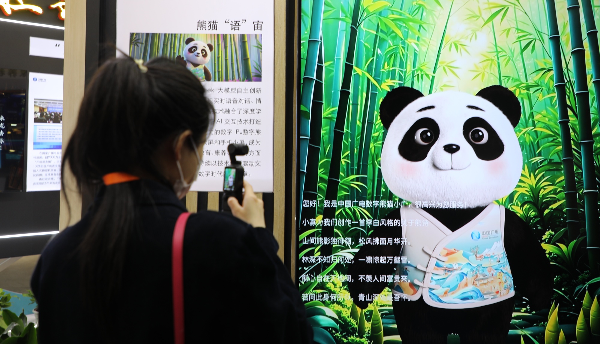 (大公文匯網 記者 李兵 成都報道)「小廣,請為我們創作一首李白風格的詩!」「山間熊影獨徘徊,松風拂面月華開。林深不知歸何處,一嘯驚起萬壑雷……」在中國廣電展區入口處,數字熊貓「小廣」現場賦詩,不少遊客豎起大拇指。展區裏,還展出了基於DeepSeek大模型的中國廣電5G智能客服等新技術和新產品,以及「重溫經典」頻道進養老機構、雙治理、智慧廣電居家養老體驗中心等重點民生項目。