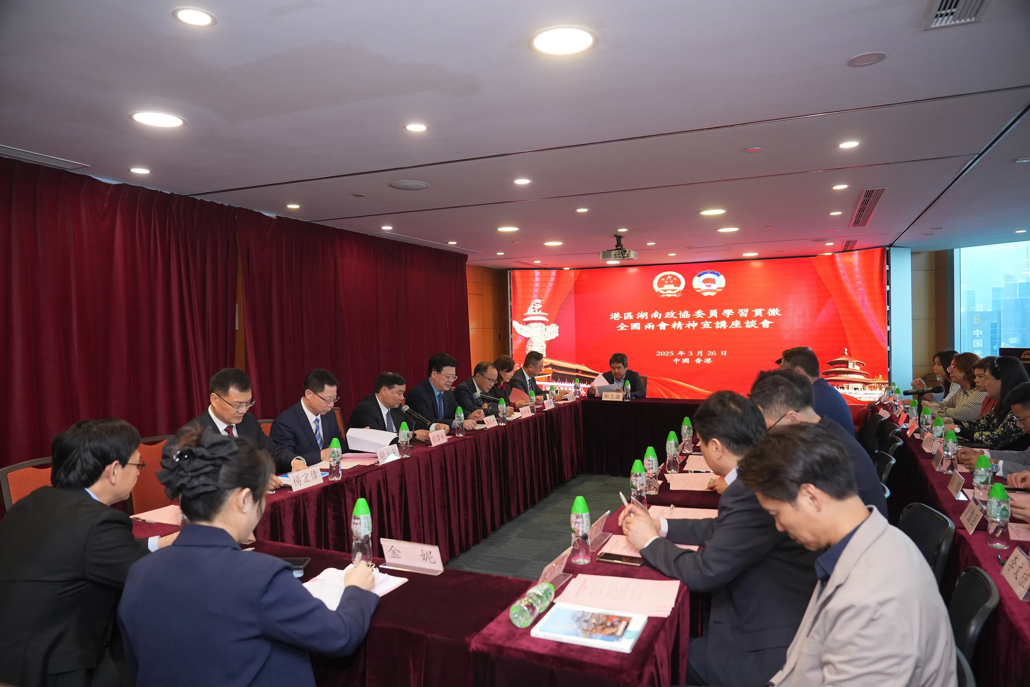 湖南省政協黨組成員、副主席胡偉林表示,港區委員要深入學習貫徹習近平總書記關於港澳工作的重要論述精神、習近平總書記在全國兩會期間重要講話精神和全國兩會精神,廣泛凝聚力量,畫出海內外支持「一國兩制」事業的最大同心圓;要深刻認識到,我國經濟基本面積極向好的趨勢沒有改變,中國仍然是世界經濟的重要引擎,堅定好發展信心,並傳遞好發展信心;要助力湘港深度合作,在產業發展、科技創新、中醫藥等多方面積極推動湘港深度對接、深度融合,引導金融資本精准投向湖南的先進製造業、新能源、新材料等戰略性新興產業,助力湖南企業引進香港先進管理經驗和前沿技術;港區委員要加強與各界人士的聯絡溝通,更有效地開展「四個凝聚」工作,積極宣傳推介湖南,吸引更多香港朋友、企業來湘旅遊、投資、興業,為湖南的發展貢獻智慧和力量,也為香港的長期繁榮穩定、更好地融入國家發展大局,作出新的更大貢獻。
