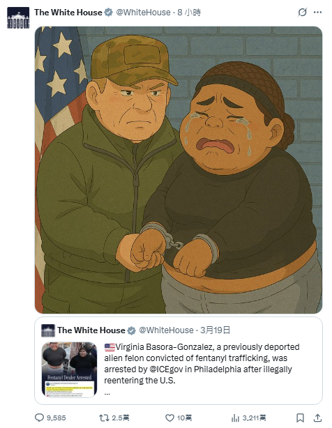 周四,白宮官方社交賬戶發布了一張吉卜力風格的圖片,圖片中一名多米尼加共和國婦女哭泣,這名婦女最近被美國移民局逮捕。白宮和OpenAI尚未立即回應關於該圖片製作過程的評論請求。