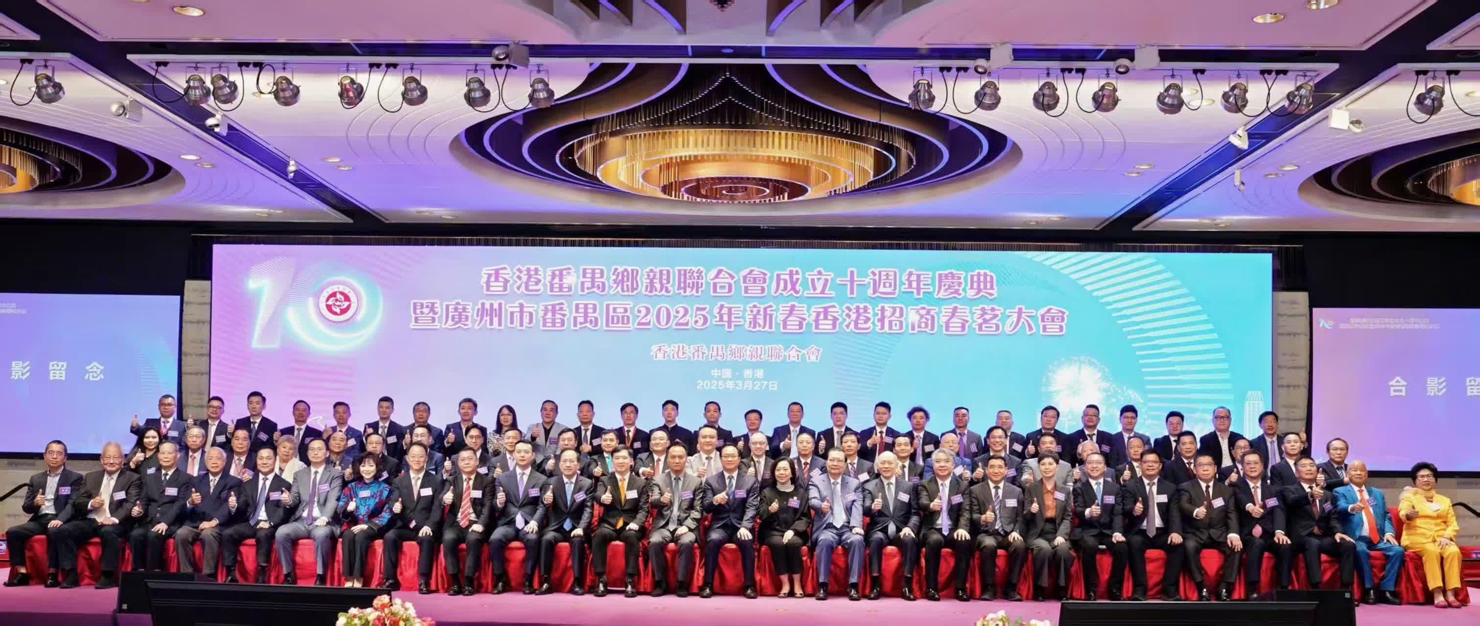 3月27日,番禺區在香港舉行香港番禺鄉親聯合會成立十周年慶典暨廣州市番禺區2025年新春香港招商春茗大會,與香港政界、商界知名人士,番禺籍廣州市榮譽市民,旅港番禺鄉親共賀新春、共敘鄉情、共謀發展。中央政府駐港聯絡辦社團聯絡部副部長餘學傑,香港民政及青年事務局局長麥美娟,香港政制及內地事務局副局長胡健民,番禺區政協主席鄧耀棋、區委副書記饒潔怡,以及廣州市有關部門領導出席大會。