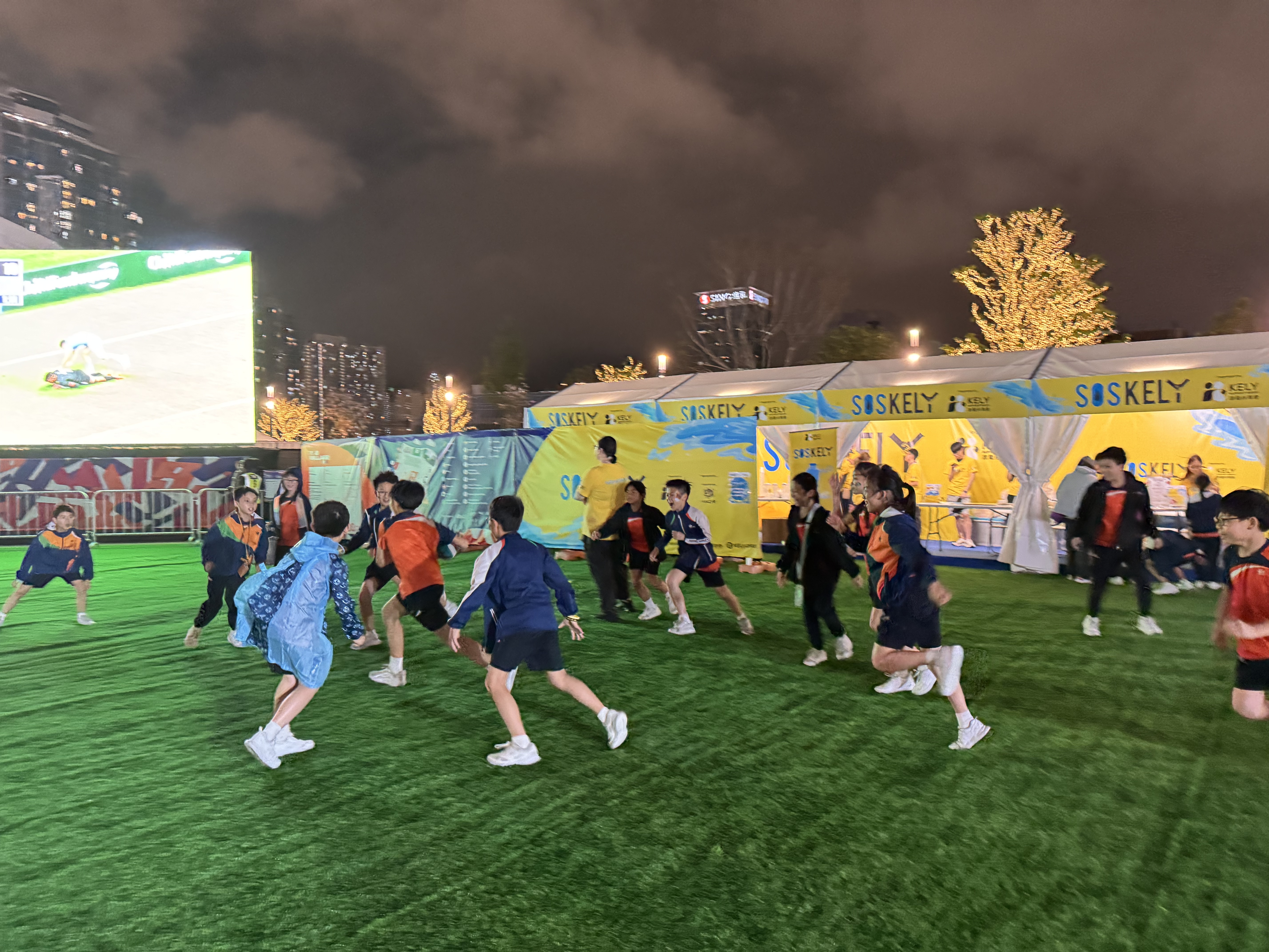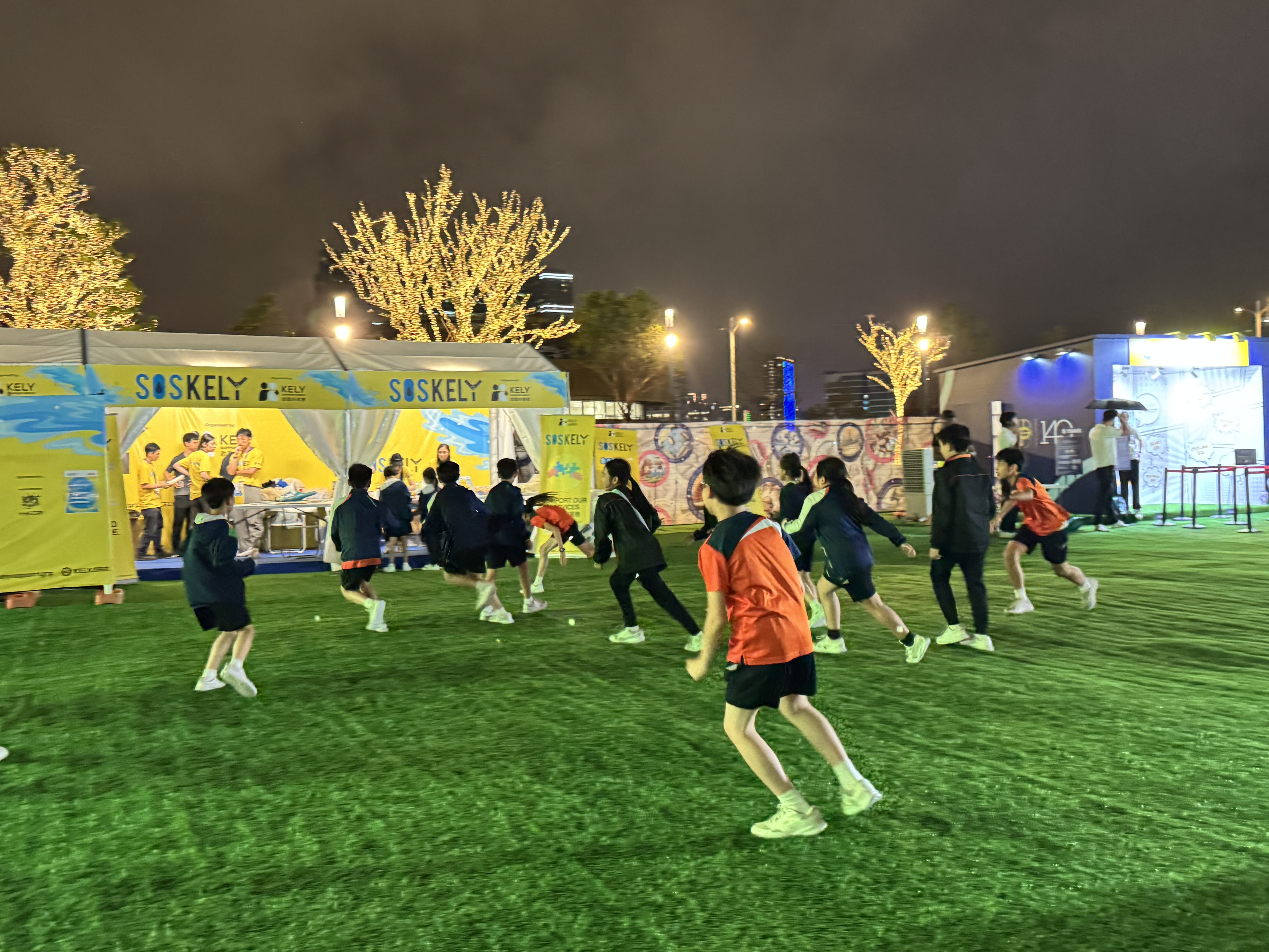 另外,點新聞記者觀察到,在主場館內球員們奔跑於賽場上的同時,球迷村內也有一群小朋友互相追逐爭奪橄欖球,他們邁開步伐,在嬉笑中體驗欖球運動帶來的樂趣。