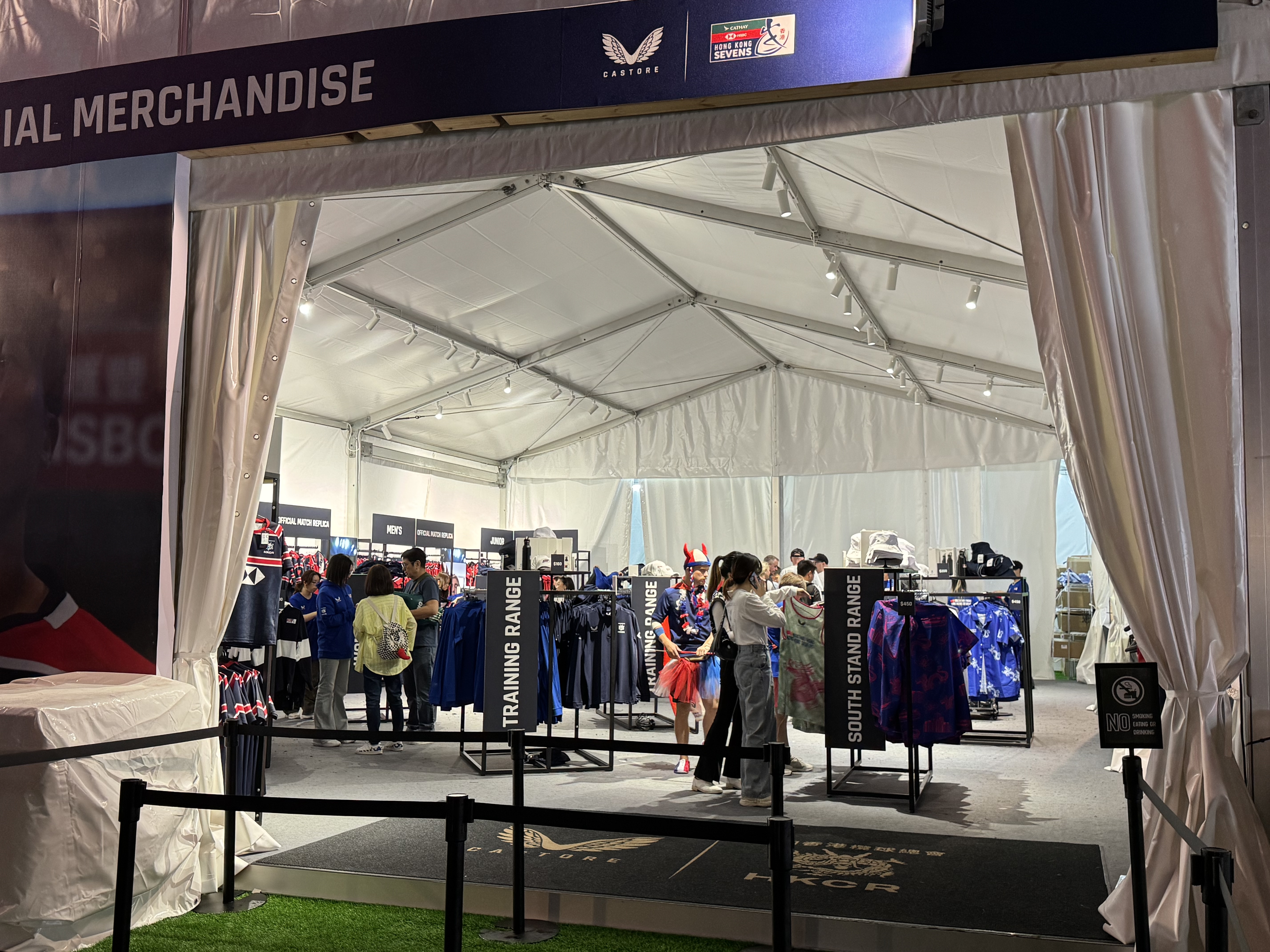 球迷村內還設有服裝攤位,不少球迷在挑選心儀的運動服裝,有球隊服和帽子,慶祝今屆國際欖球賽事。