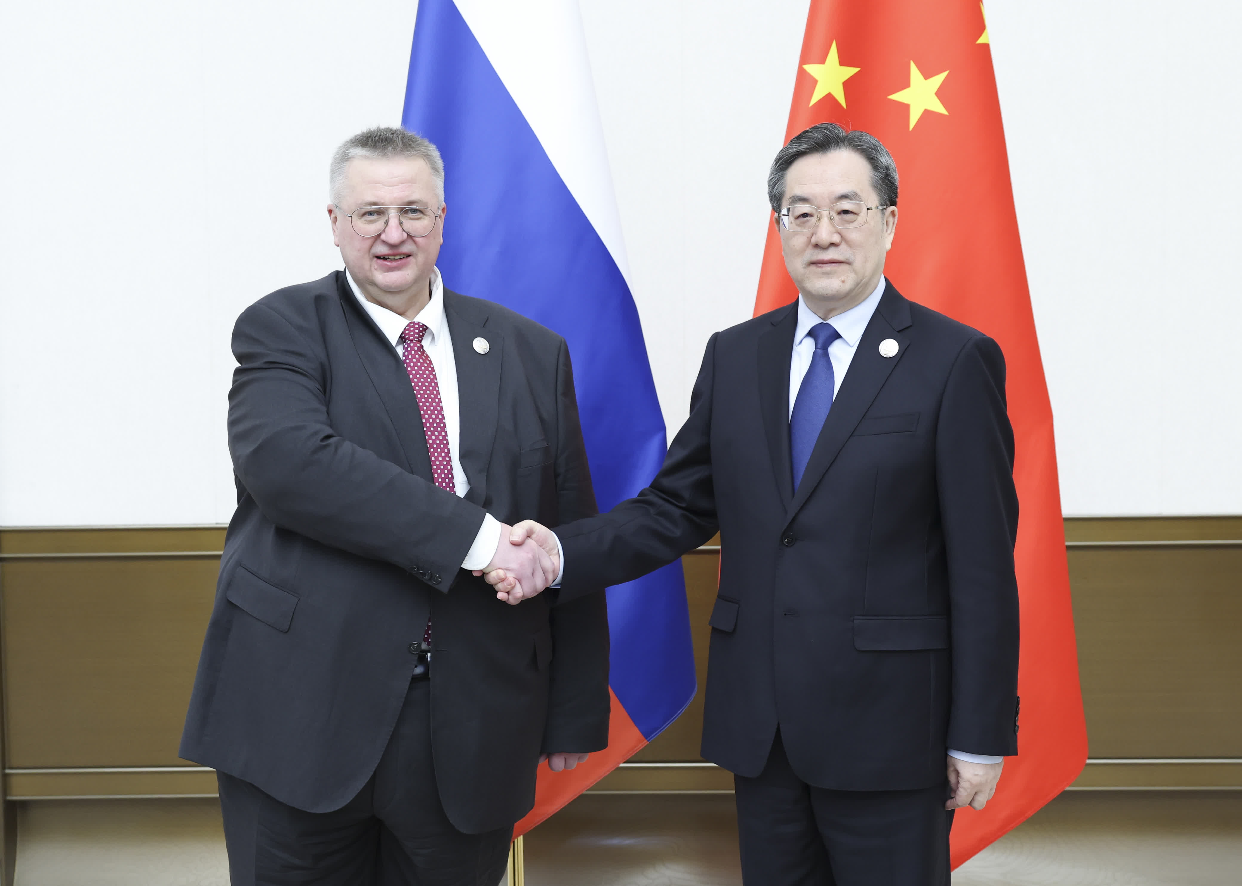 在會見奧韋爾丘克時,丁薛祥表示,今年以來,習近平主席同普京總統兩次進行溝通交流,為中俄關係發展指明了前進方向。雙方要遵循元首外交戰略引領,持續深化戰略協作和務實合作,為世界和平穩定提供強大確定性。