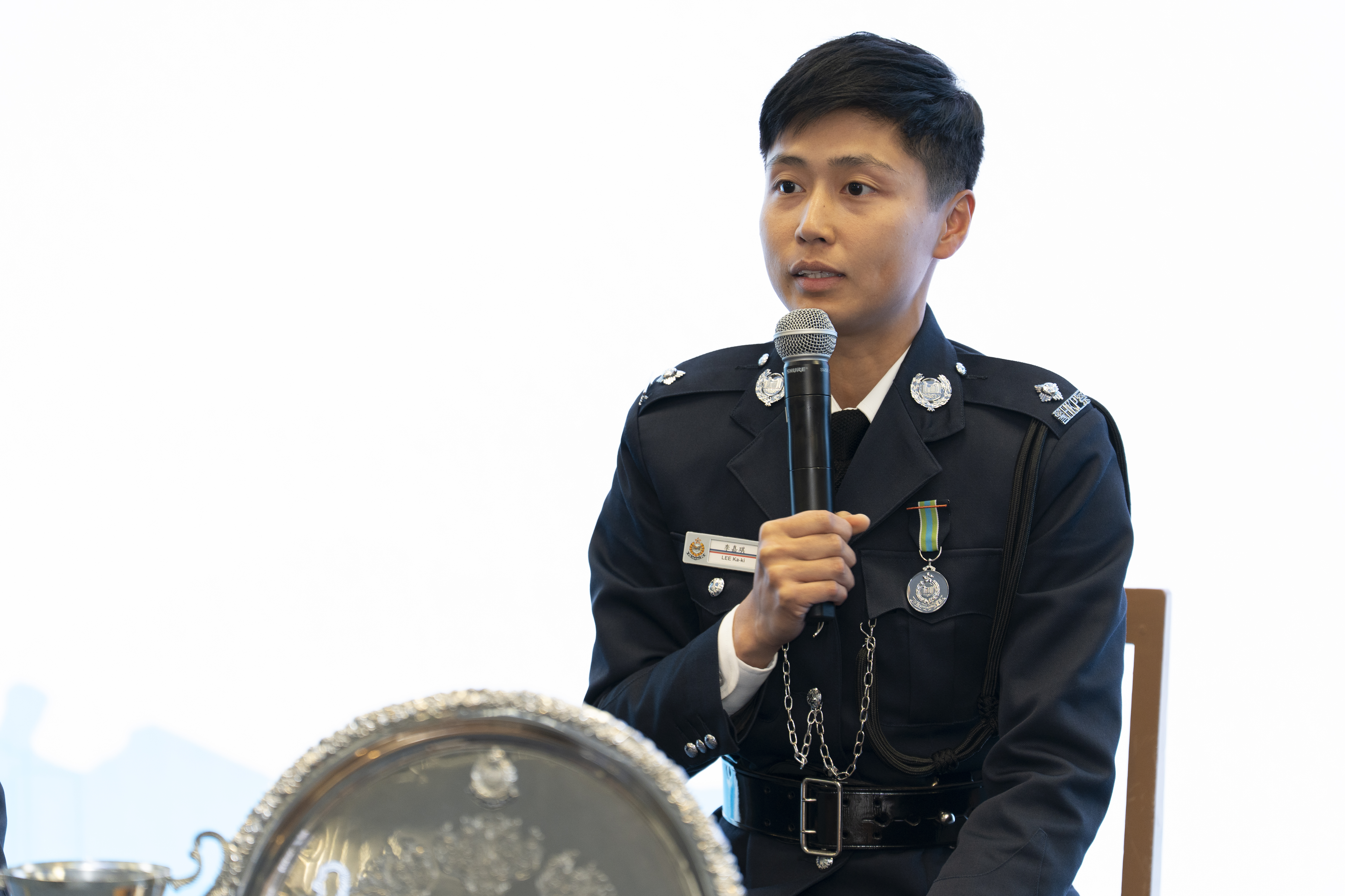 今年32歲的李嘉琪,從香港理工大學會計專業畢業,到如今已是警界佼佼者,榮獲施禮榮盾、榮譽警棍及學業成績優異證書。中學時的她,曾以「只求合格」為目標,但會考的挫折讓她醒悟,人生需認真對待每一件事。這份覺悟助她順利升入大學,並堅定了成為警察的決心。8年前,李嘉琪從警察學院畢業,正式成為警員。結業前夕,她收到了一份特別的禮物——前任警員編號「22209」使用者的「紅膊頭」肩章,這份傳承讓她深感責任重大,激勵她不斷進取。