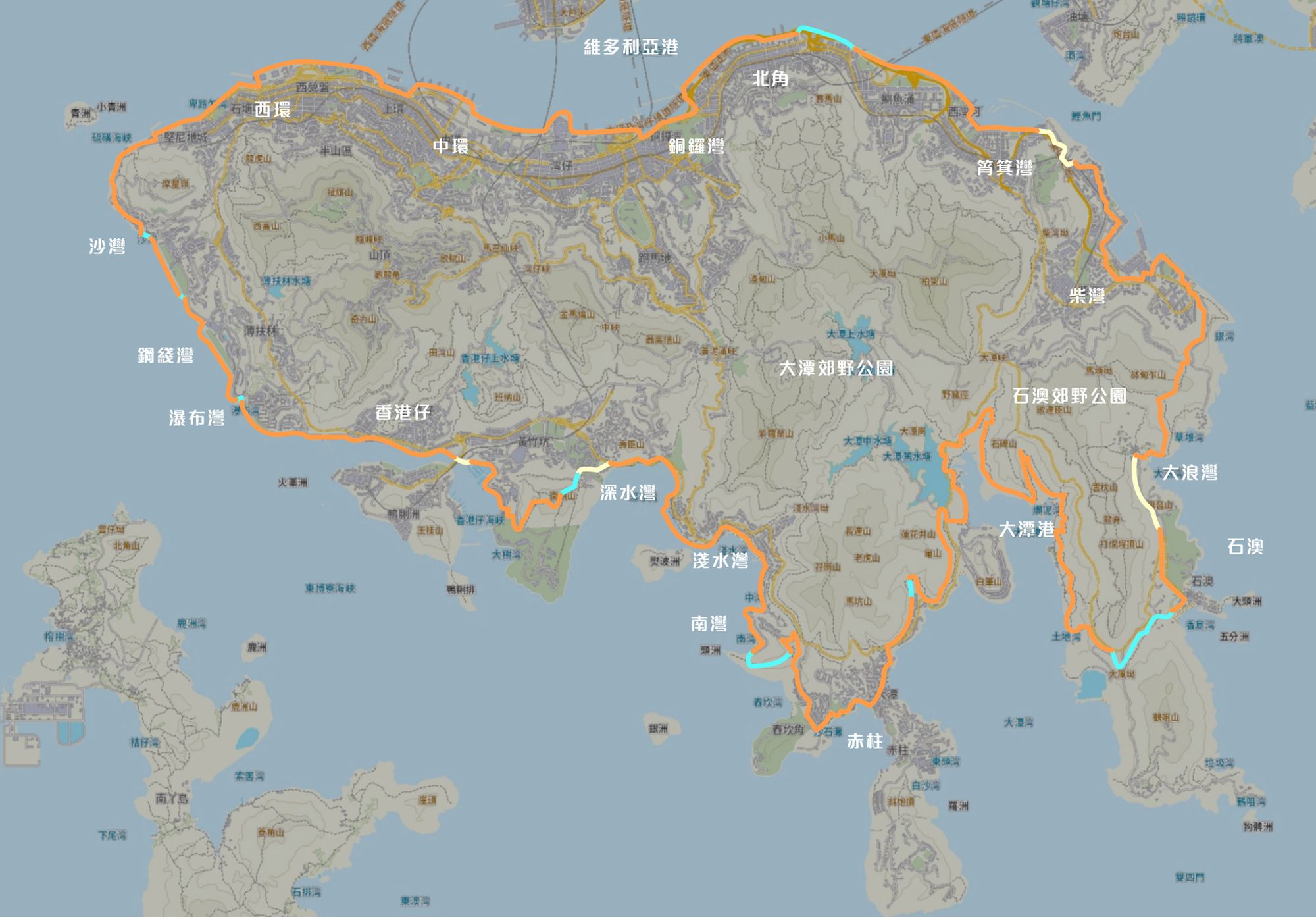 而最近進一步駁通和開放的路段包括北角東岸板道(西段)、沙灣步行徑和加多近街海濱長廊。今年起亦會陸續駁通東岸板道(東段)、南灣泳灘至舂磡角配水庫和鶴咀道至石澳泳灘的行山徑等,以及優化現有海濱長廊和步行徑。