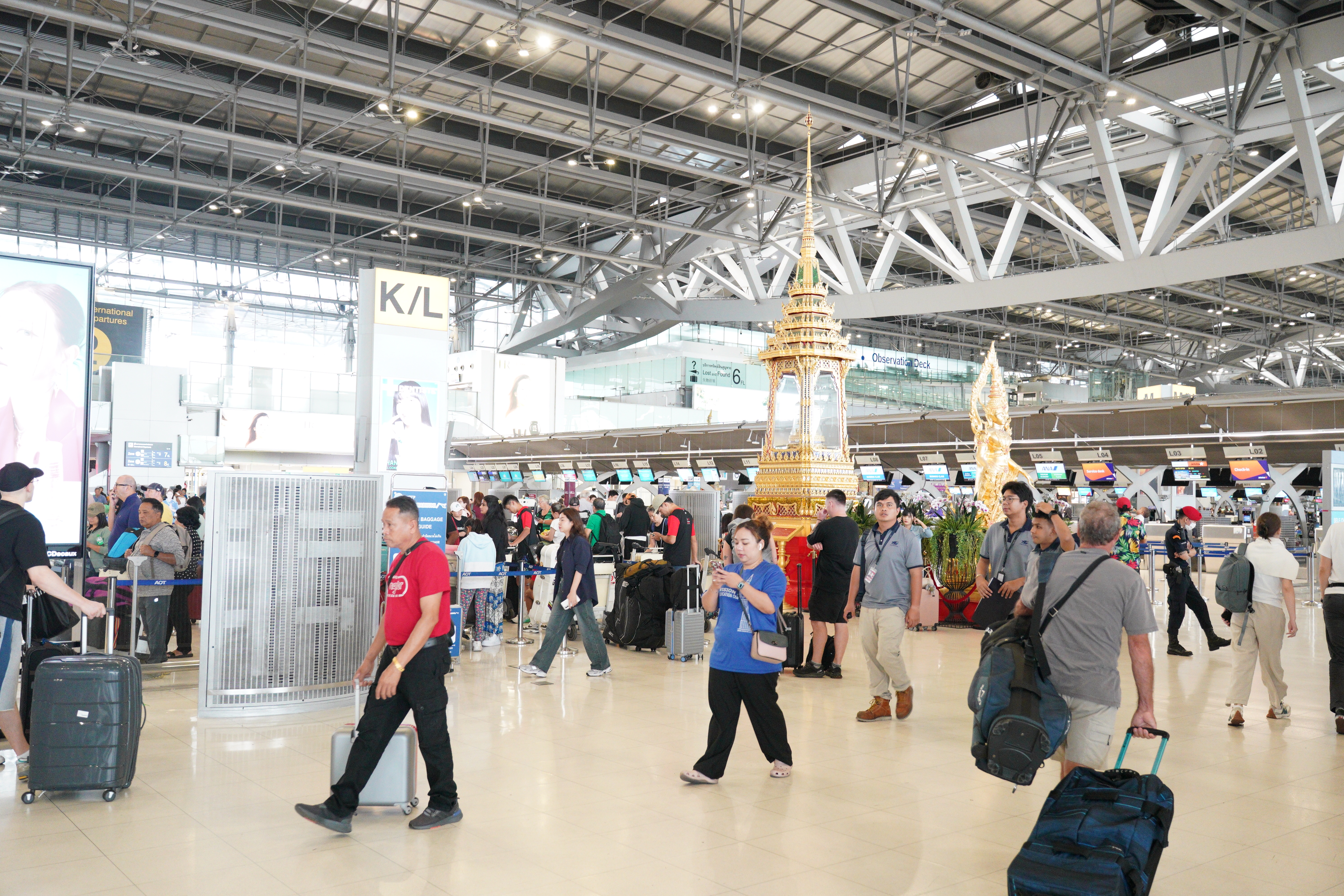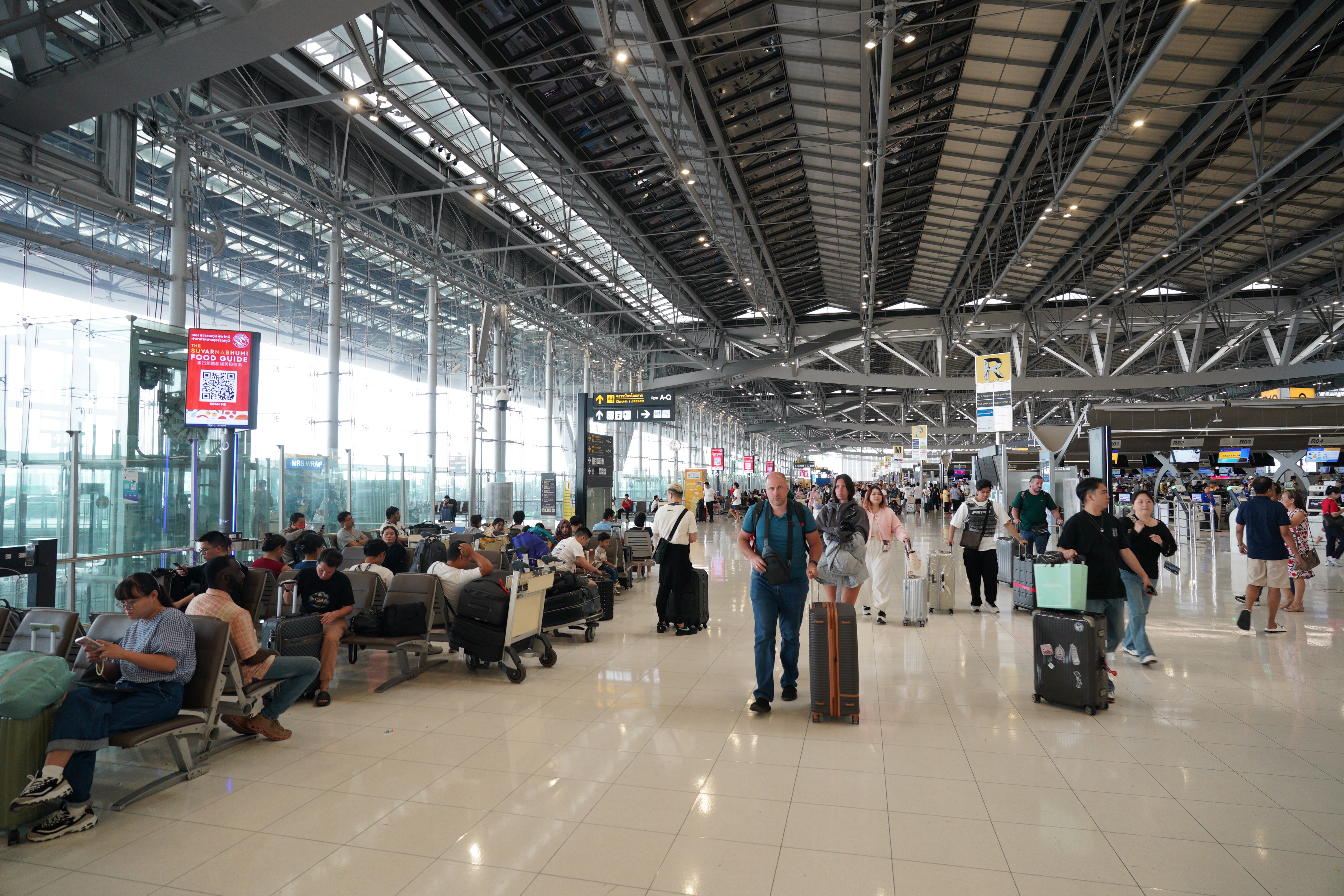 (大公文匯全媒體 特派記者 麥鈞傑 曼谷報道)3月28日,緬甸中部發生7.9級地震,周邊國家及地區包括泰國、老撾等亦受影響。點新聞記者今日(30日)到達曼谷素萬那普機場,發現機場運作已回復正常,但入境大堂人流比往時少,而離境大堂還是人流較多。機場的士站不用排隊,現場有許多的士候客。